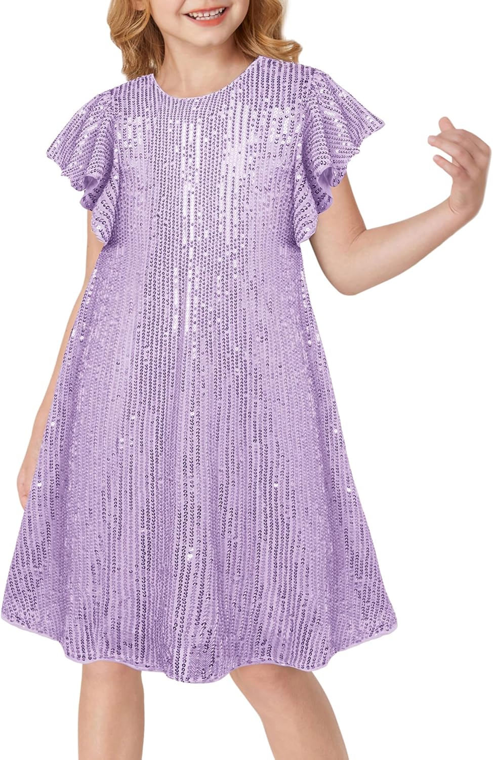 This girls sparkly sequin dress with short ruffle sleeves is a perfect gift for a Christmas party, New Year party, and suitable for any other special occasion all seasons.