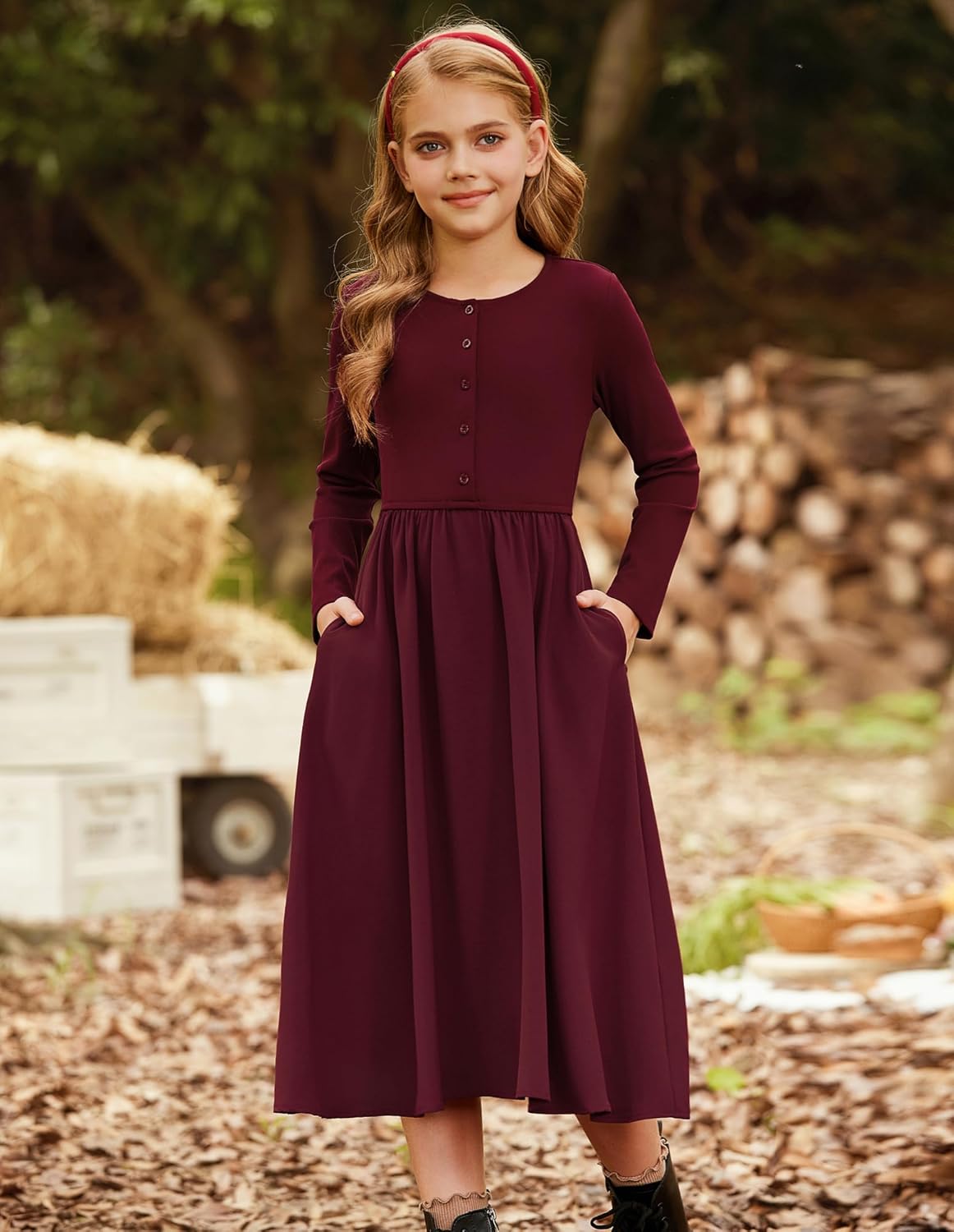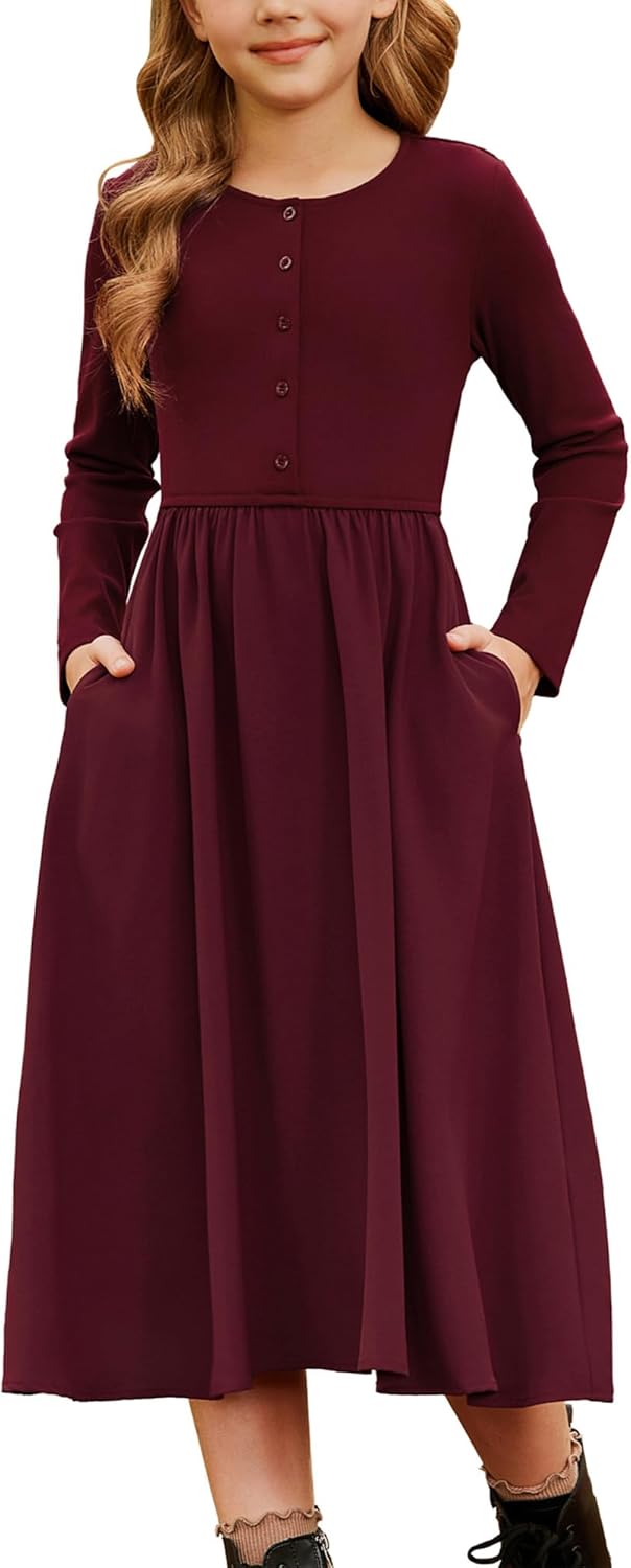 GRACE KARIN Girls Spring Long Sleeve Dresses Girl Casual Maxi Dress with Pockets Kids Formal Party Dress