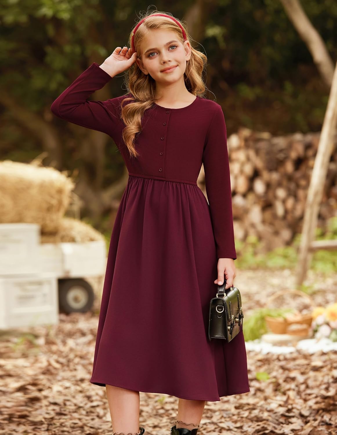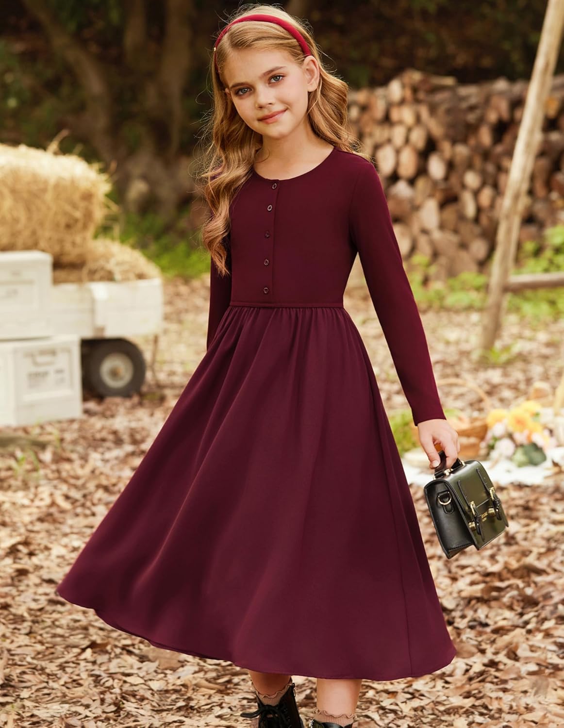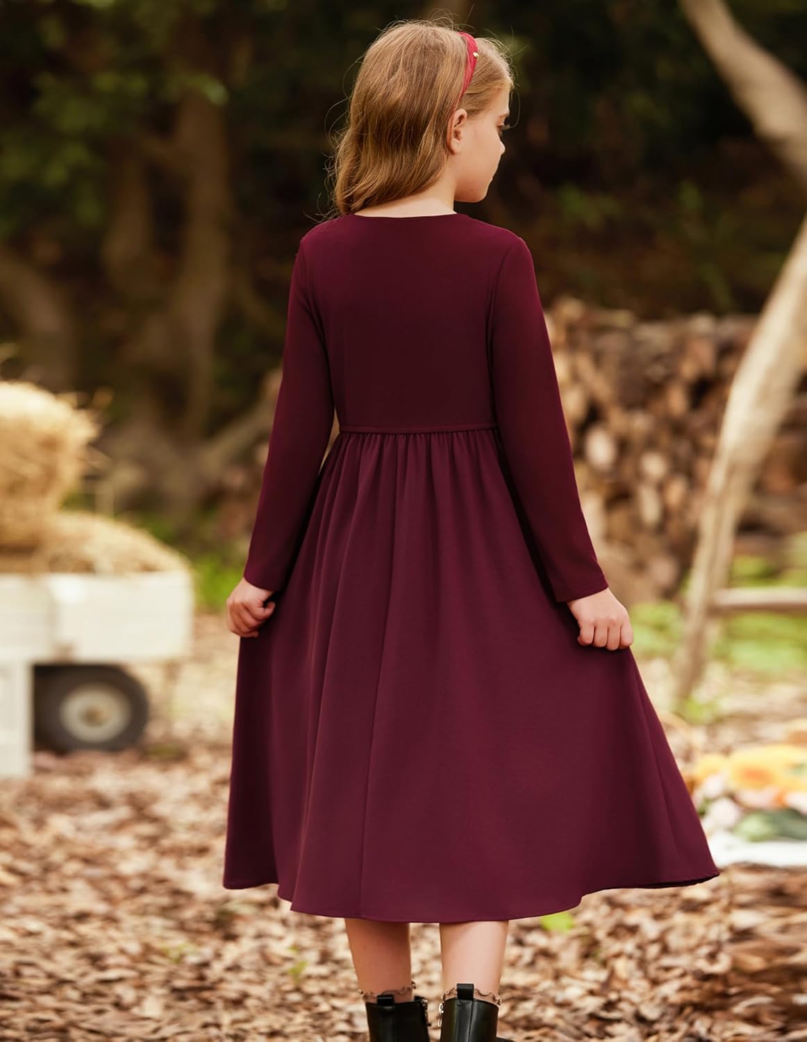 GRACE KARIN Girls Fall Long Dress Contrast fabric design Girls Fall Dress