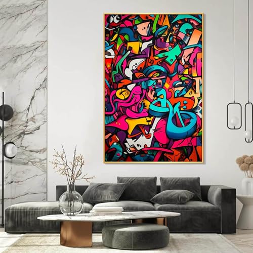 Graffiti Canvas Wall Art, Graffiti Art Wall Decor, Urban Poster for Wall, Abstract Canvas Wall Art, Urban Art Print Framed, Wall Decor Living Room Bedroom (Gold Framed, 39″x59″|100x150cm)