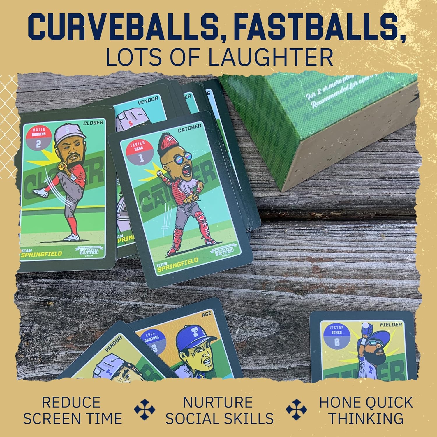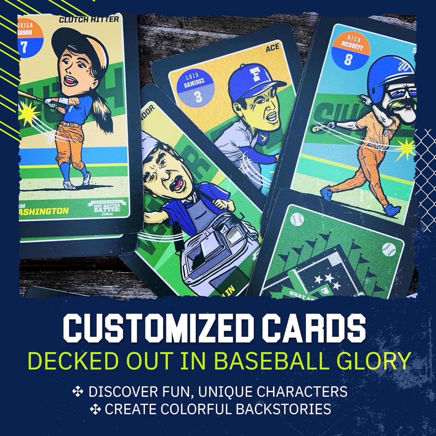 You’ll love the cast of characters that What About Baseball has created for the custom deck in Hey Batter…have some fun with the deck and see what kind of stories you can create about who these players are and what they’re like.
