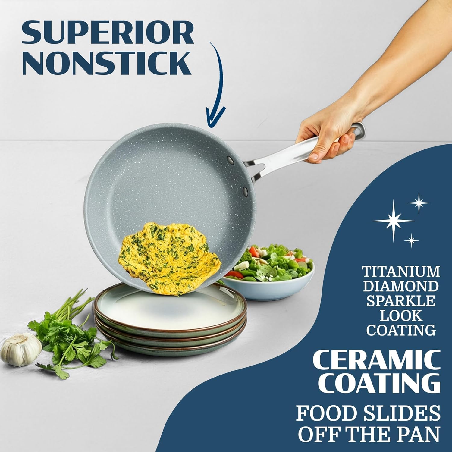 Granitestone Ceraluxe 20 Pc Ceramic Cookware Set Nonstick, Complete Pots and Pans Set Non Stick with 5 Pc Bakeware Set, Deep Frying Pan Set, & Steamer, Non Toxic PFOA Free, Oven & Dishwasher Safe