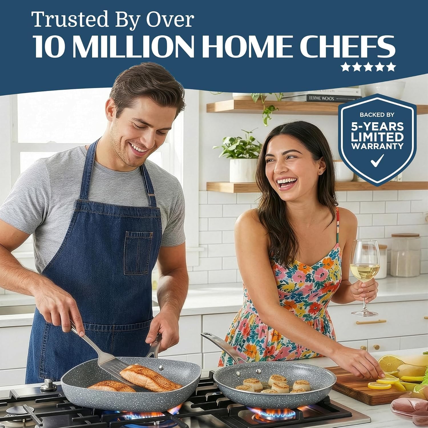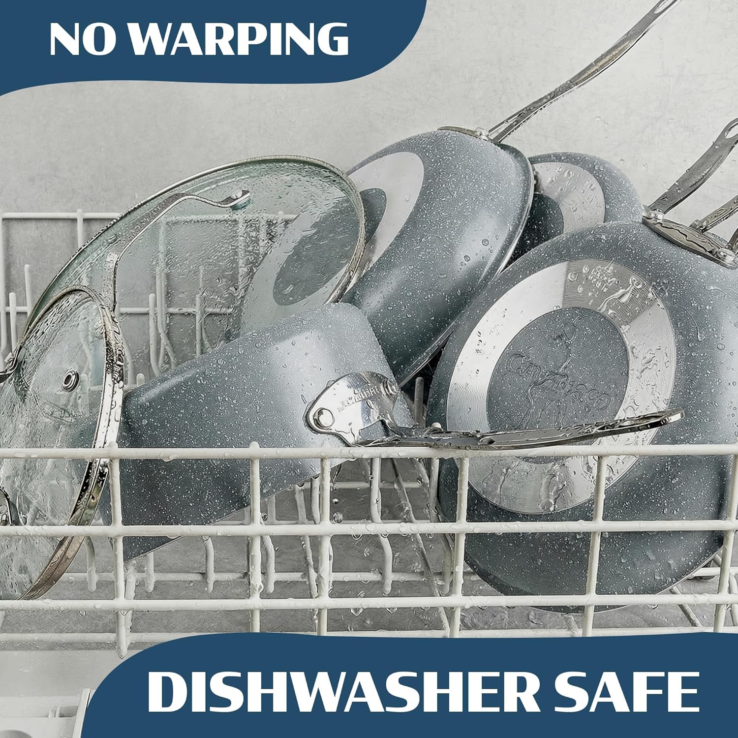 EASY TO CLEAN: Granitestone cookware is designed for an effortless wipe down after using and is completely dishwasher safe allowing you to simply throw your cookware and bakeware in the dishwasher after using for a quick and easy cleanup experience.
