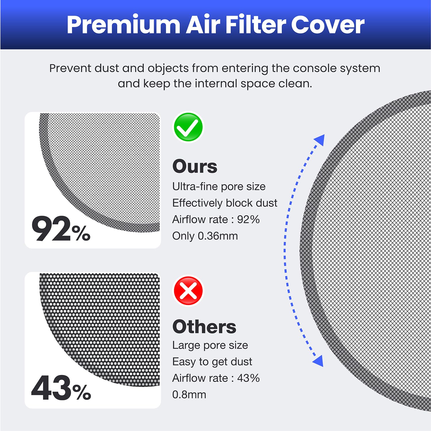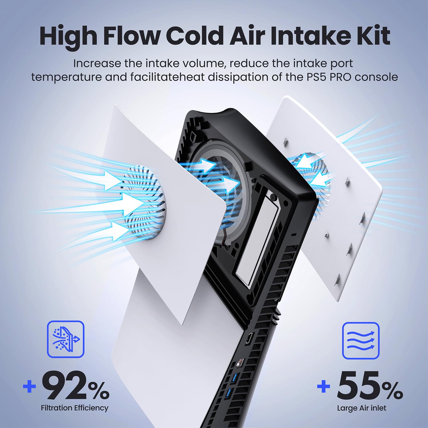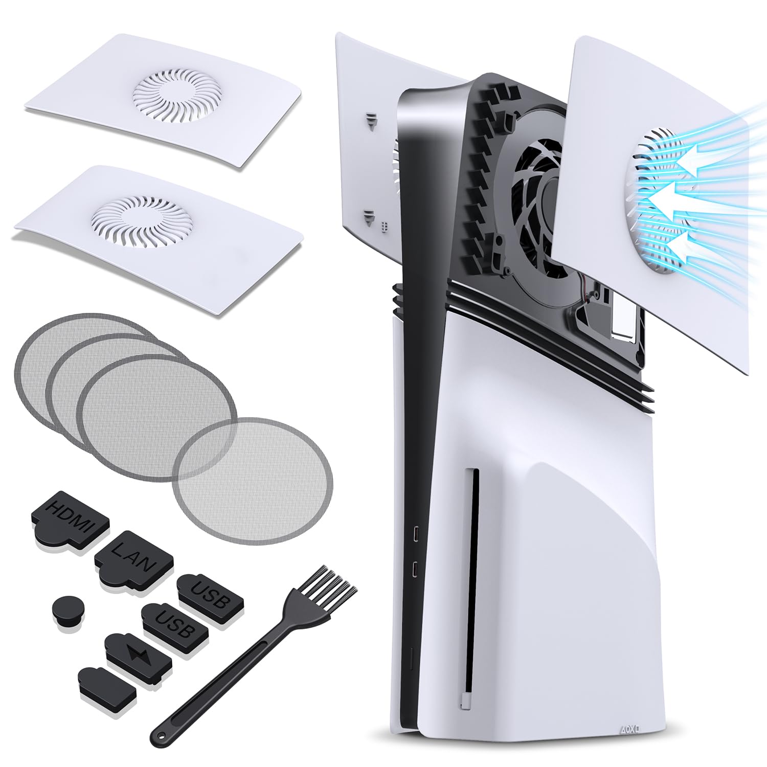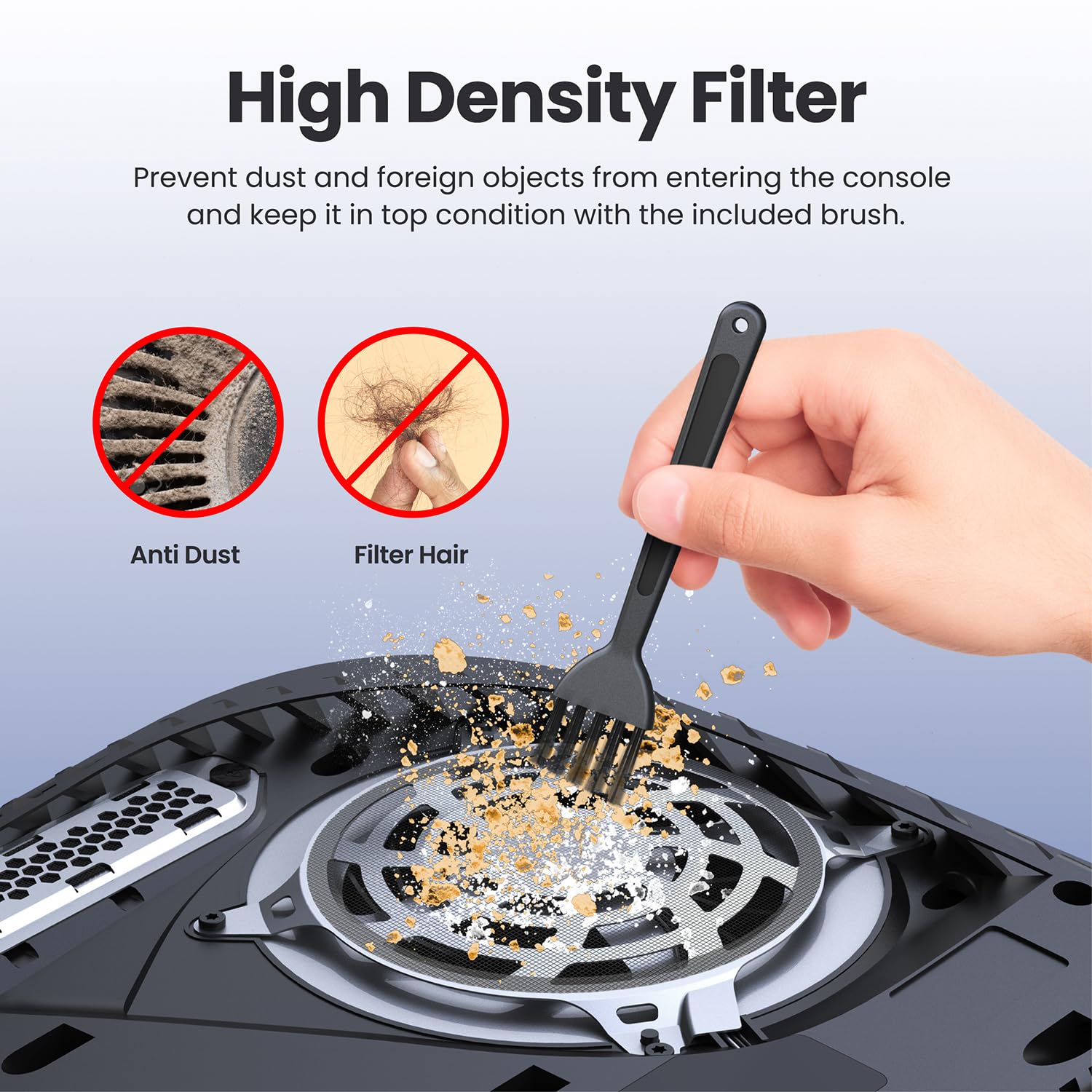 Premium Dust Protection – High-density 92% filtration fan filters and silicone dust plugs keep dust, hair, and debris out of your PS5, extending system lifespan