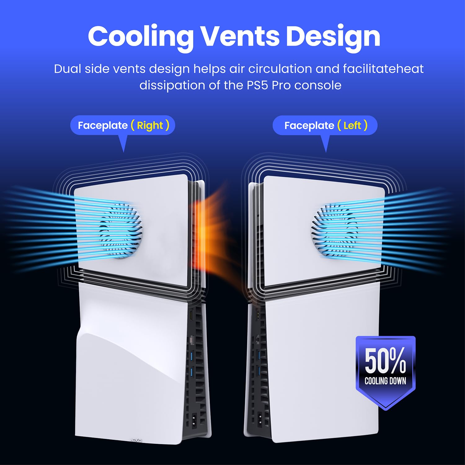Enhanced Cooling Efficiency – Custom-designed vented faceplates improve airflow circulation, reducing console temperature by up to 50% for stable gaming performance