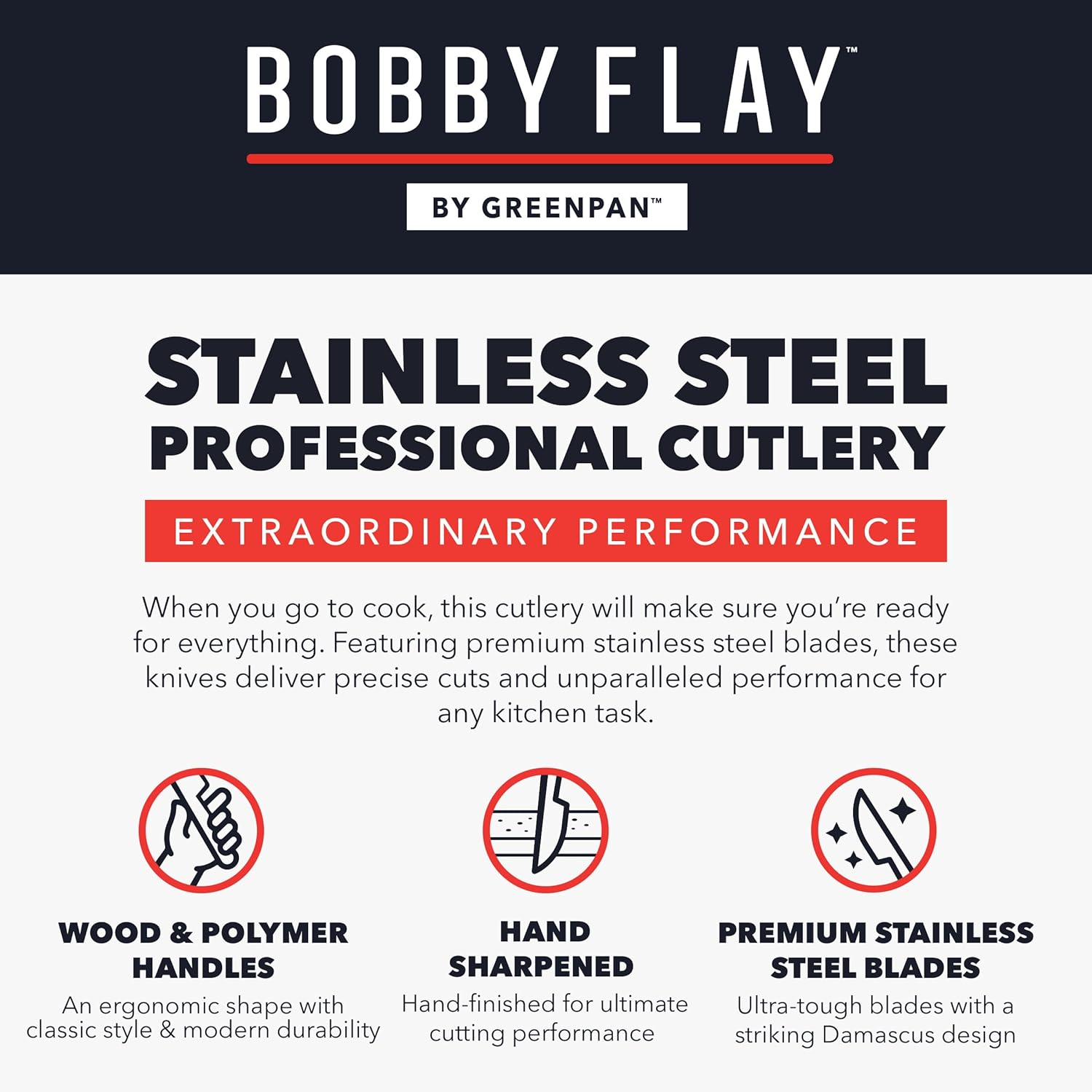 BOBBY FLAY x GREENPAN: Legendary chef Bobby Flay partnered with GreenPan to create innovative cutlery that brings pro cooking to any home