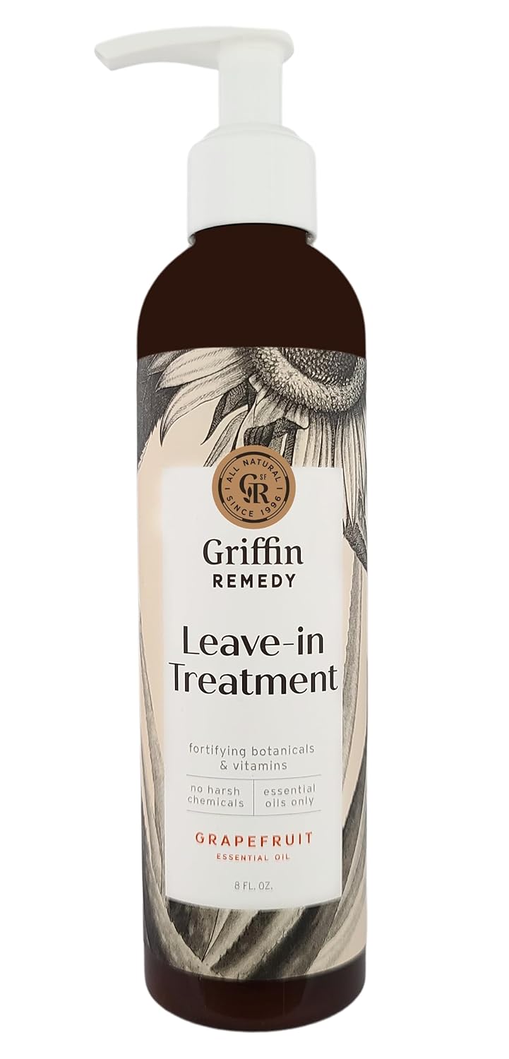 Griffin Remedy Leave In Treatment contains Organic Chamomile Extract, Organic Sage Extract, Organic Nettle Extract, and Organic Lavender Extract to strengthen, protect and repair distressing hair adding shine and manageability. Organic Chamomile revitalizes as it conditions the hair and scalp. Organic Nettle Extract adds natural gloss. The Griffin Remedy unique formulation adds nourishment, balance and strength to hair without weight it down. Griffin Remedy Leave-In Treatment Conditioner is free of parabens and sulfates with no harmful chemicals. In the beginning, Griffin Remedy sought to formulate a product that used only the purest, cleanest all-natural ingredients. Griffin Remedy now features a full range of all-natural body care products, formulated with vitamins, botanicals and essential oils. Griffin Remedy offers customers a lifestyle of total wellness; vegan products that are 100% paraben-free, with absolutely no artificial colors or fragrances, stylishly packaged in recycled materials. As always, our motto remains “What goes onto your skin, goes into your body.”