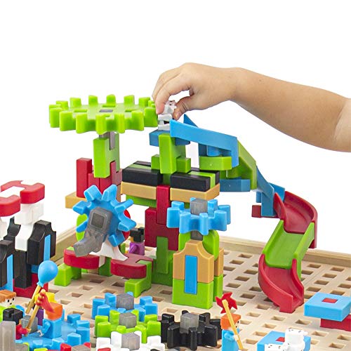Guidecraft IO Blocks STEM Table: 200 Gears, Slides IO People, Standard IO Blocks Pieces and 2 Storage Bins with Activity Table for Kids, Learning Toy for Children