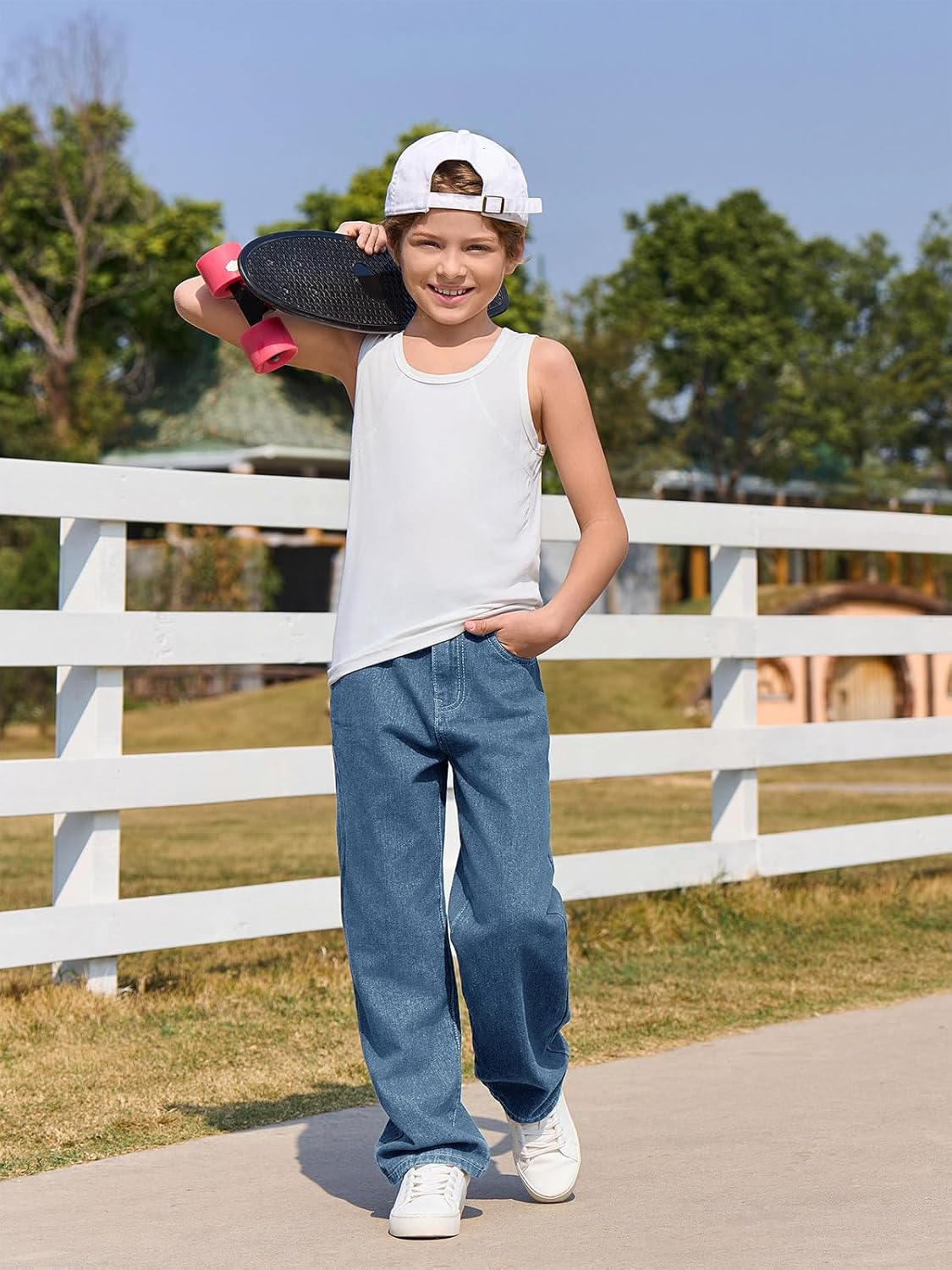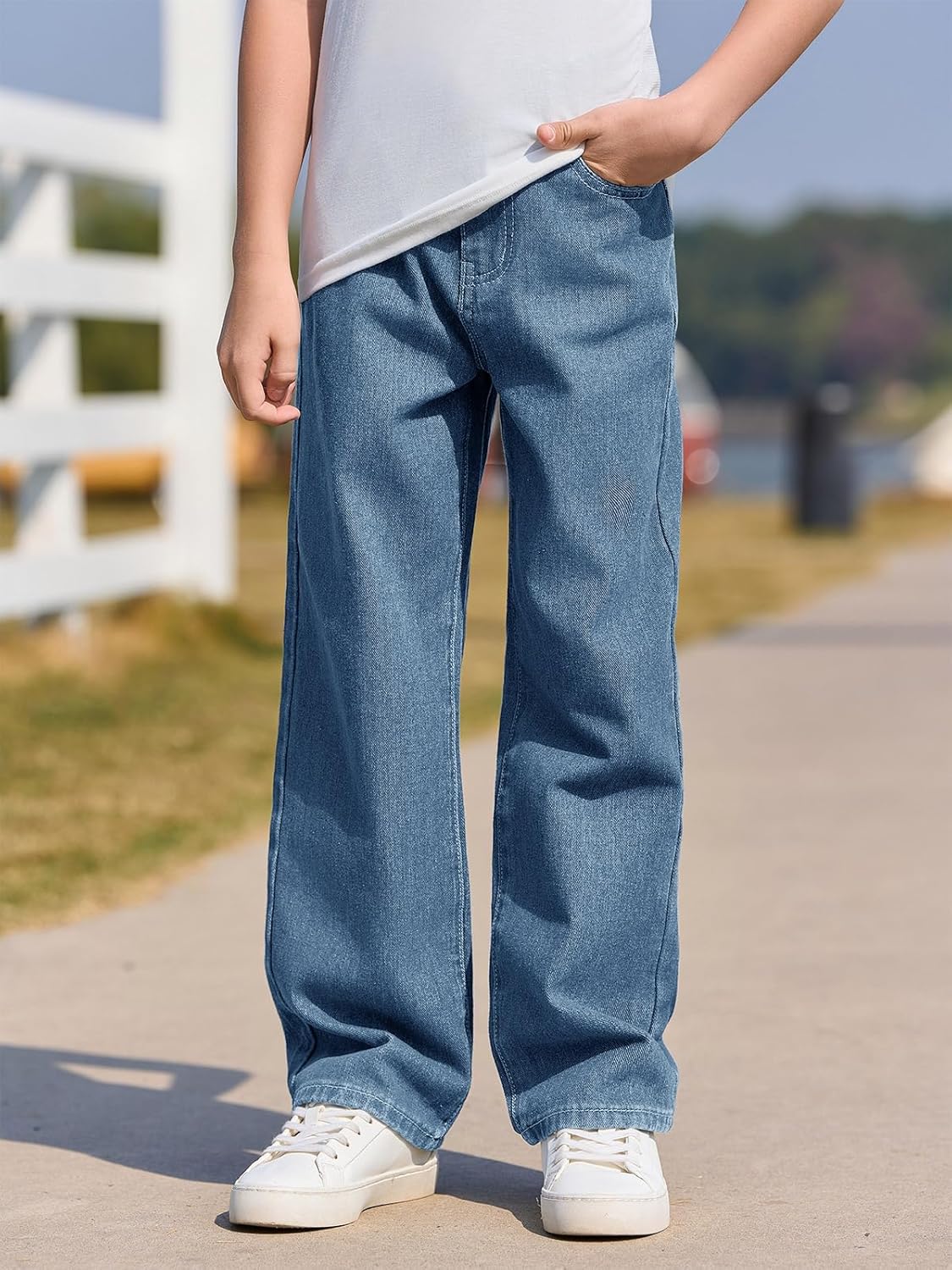 Haloumoning Boys Baggy Jeans Kids Casual Straight Leg Loose Fit Denim Pants with Pockets 5-14 Years