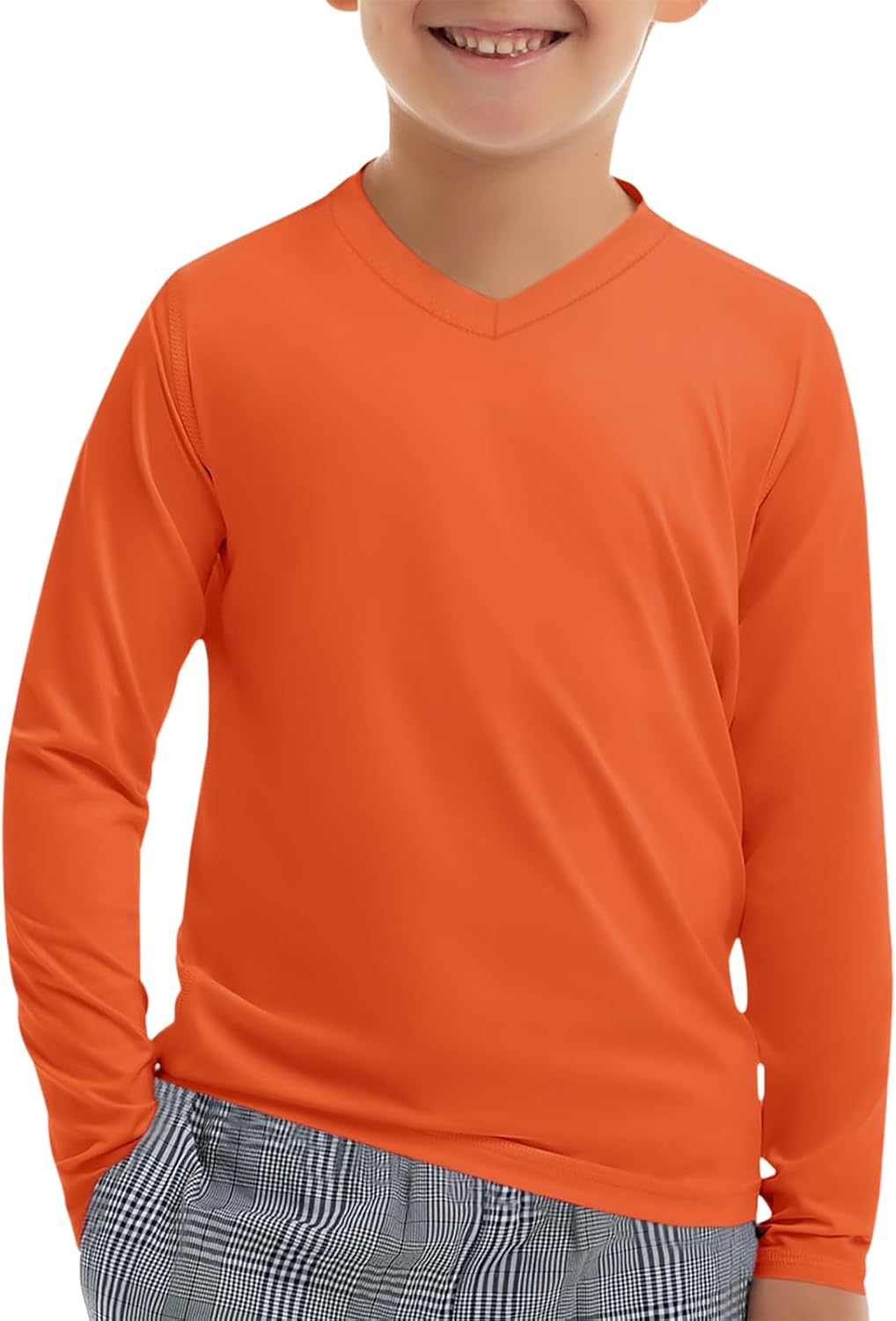 Haloumoning Boys Long Sleeve Shirts Dry Fit Athletic T Shirts for Teens Kids V-Neck Comfy Tops Tees 5-14 Years