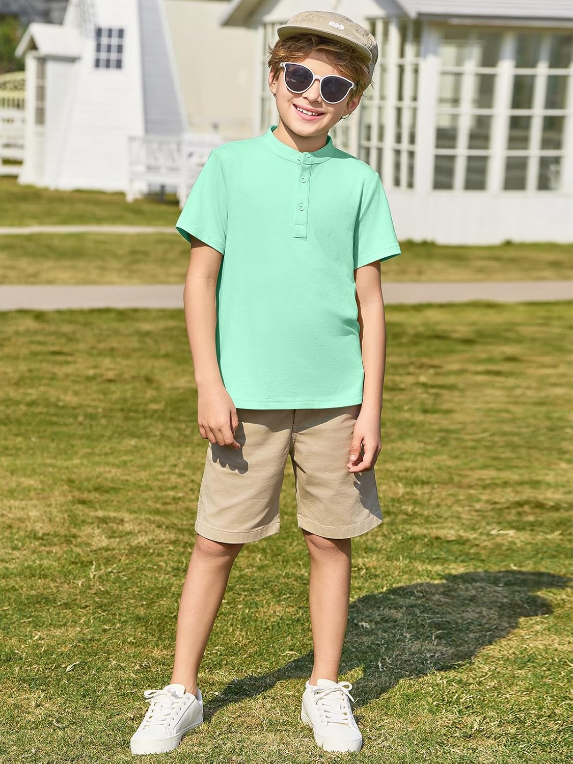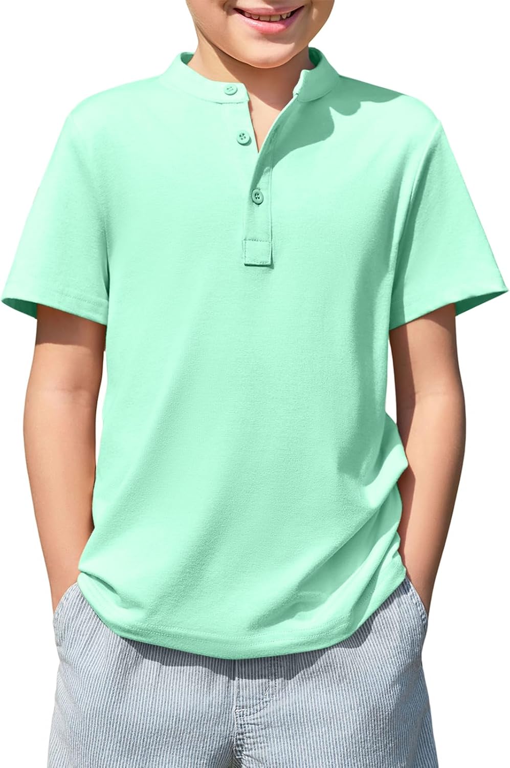Haloumoning Boys Short Sleeve Henley Shirt Kids Casual Button Front Summer T-Shirts Tops Tees 5-14 Years