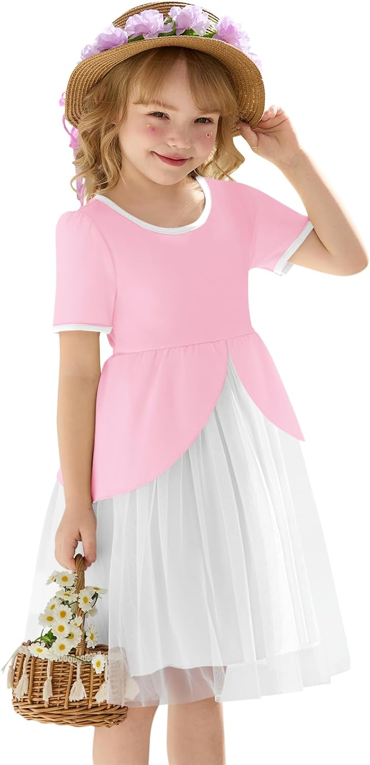 Haloumoning Toddler Baby Girl Tutu Dress Little Kids Cute Short Sleeve Ruffle Party Dresses 9M-8Y