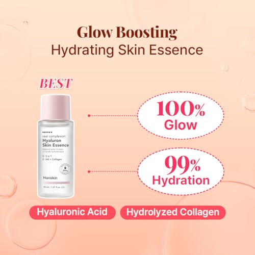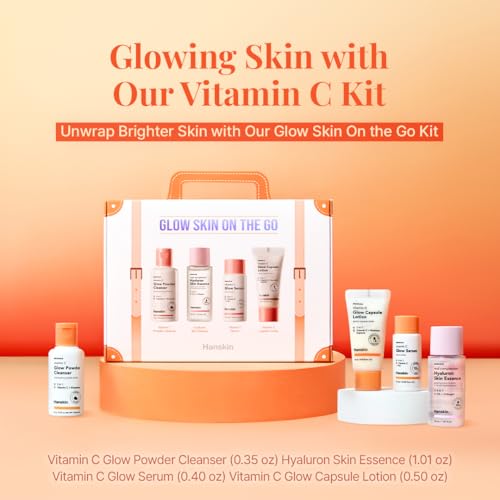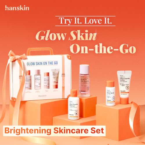 Hanskin Glow Skin On the Go Kit–Brightening & Hydrating Mini Skincare Set with Cleanser, Essence, Serum & Lotion | TSA-Friendly Travel Kit, Holiday Gift, Stocking Stuffer, Teen Girl & Women’s Skincare