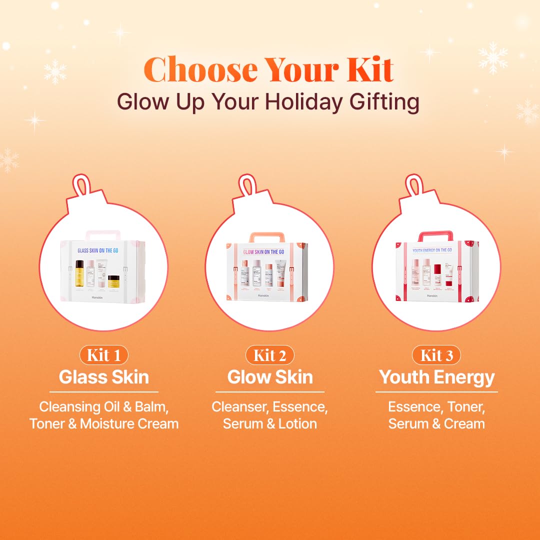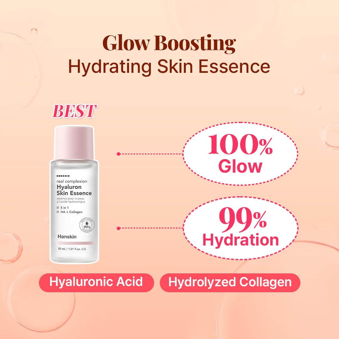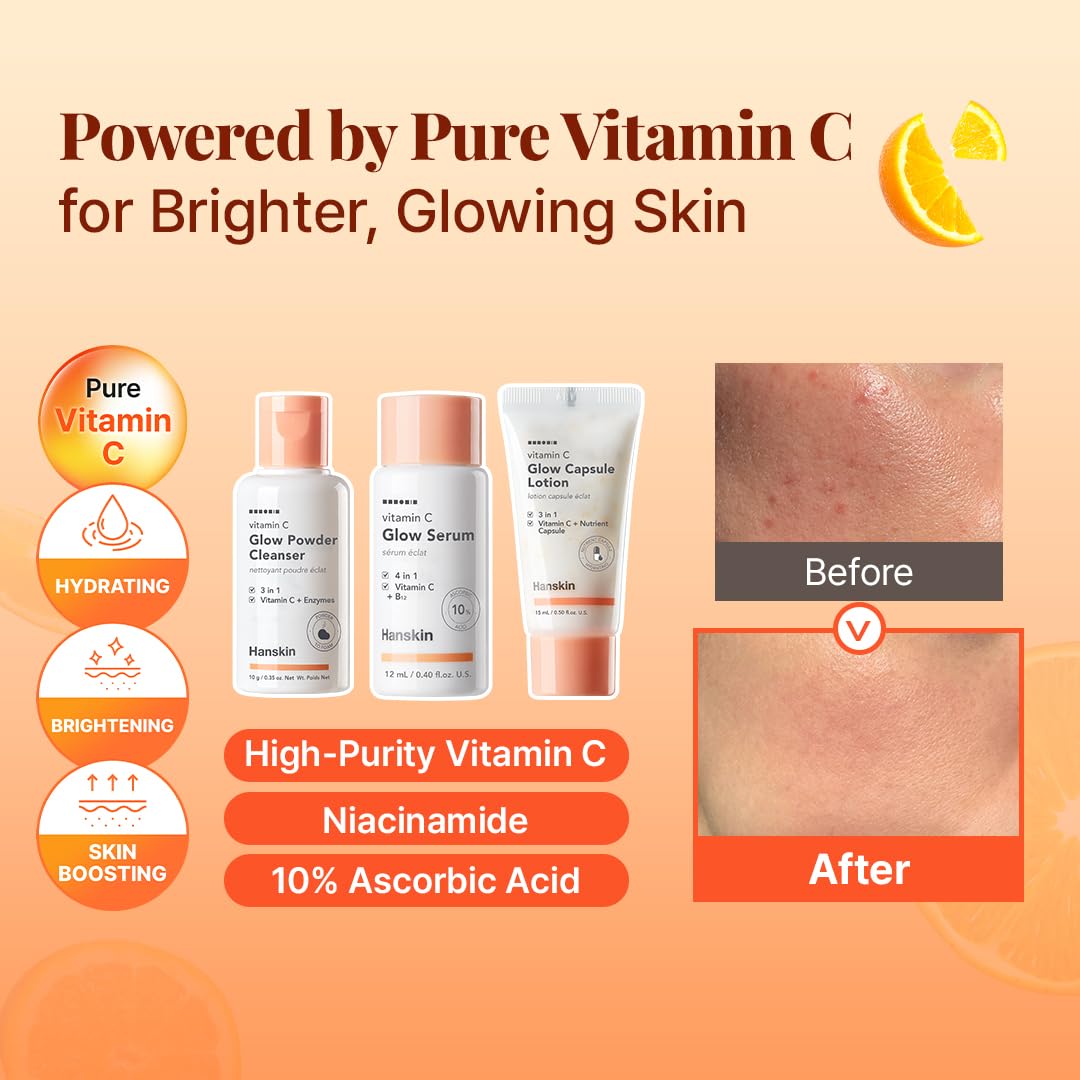Hanskin Glow Skin on the Go Kit– Brightening & Hydrating Travel Kit with Cleanser, Essence, Serum & Lotion – Korean Skincare for Glowing, Radiant Skin – Moisturizing Face Care Vitamin C Gift Set