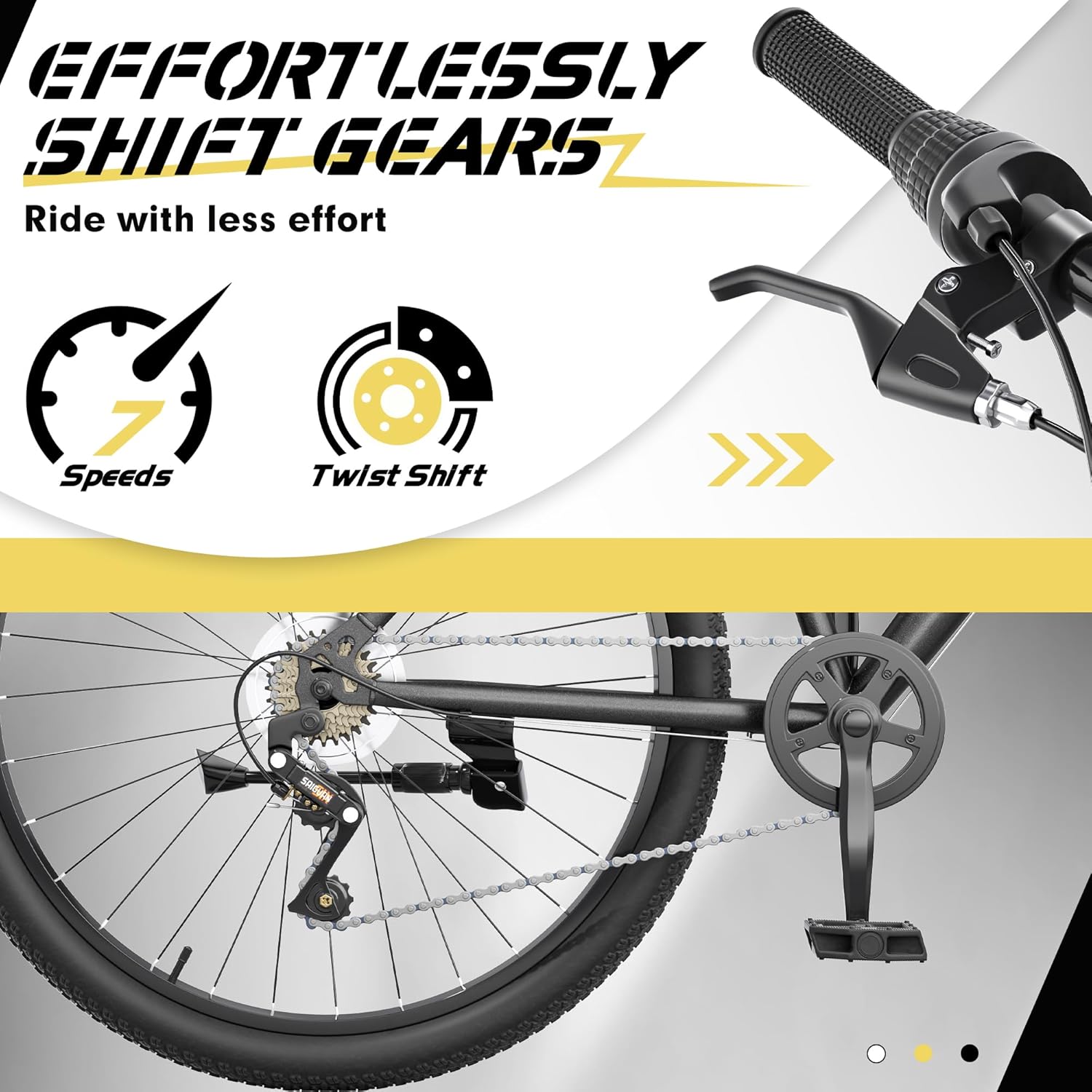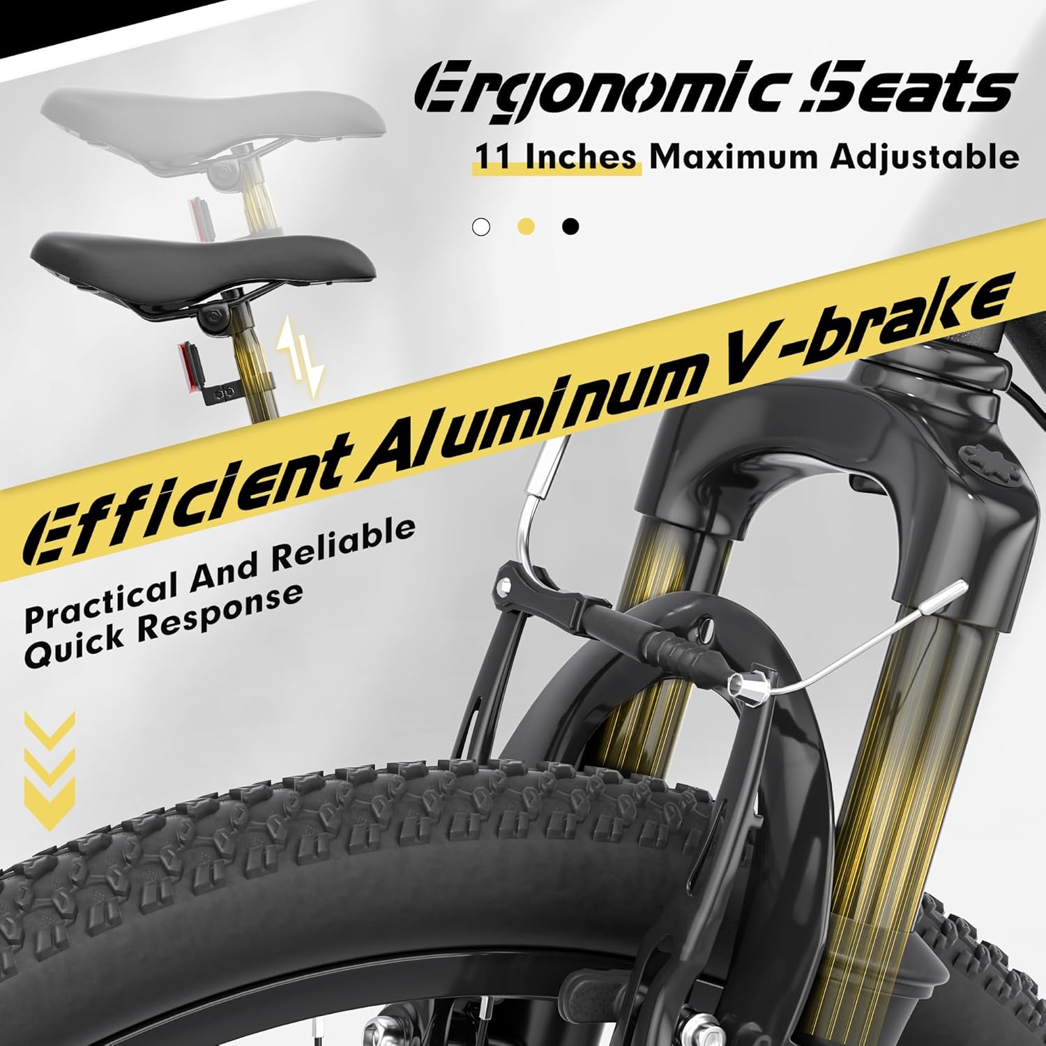 [Versatile Performance] 7-speed gear system paired with V-brakes offers flexibility and durability for various riding conditions
