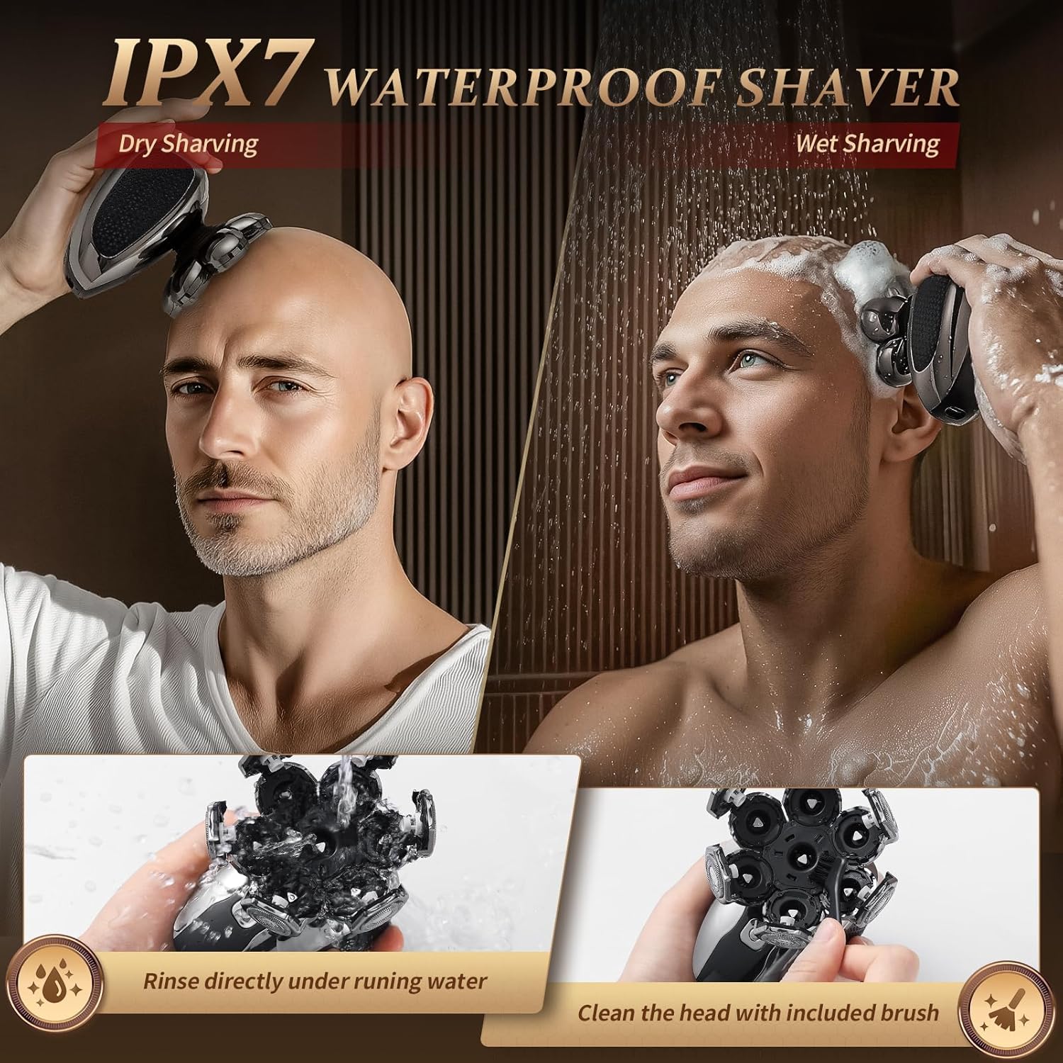 IPX7 Waterproof Shaver for Dry & Wet Shaving: For an ultra-close shave,we recommend prepping your beard with shaving foam to soften facial hair prior to shaving. The whole body of the head shaver is IPX7 waterproof, allowing you to enjoy both comfortable dry shaving and a refreshing wet shave with your favorite shaving foam. The included cleaning brush enables quick and hassle-free maintenance, ensuring your shaver stays in perfect shape with minimal, easy care.