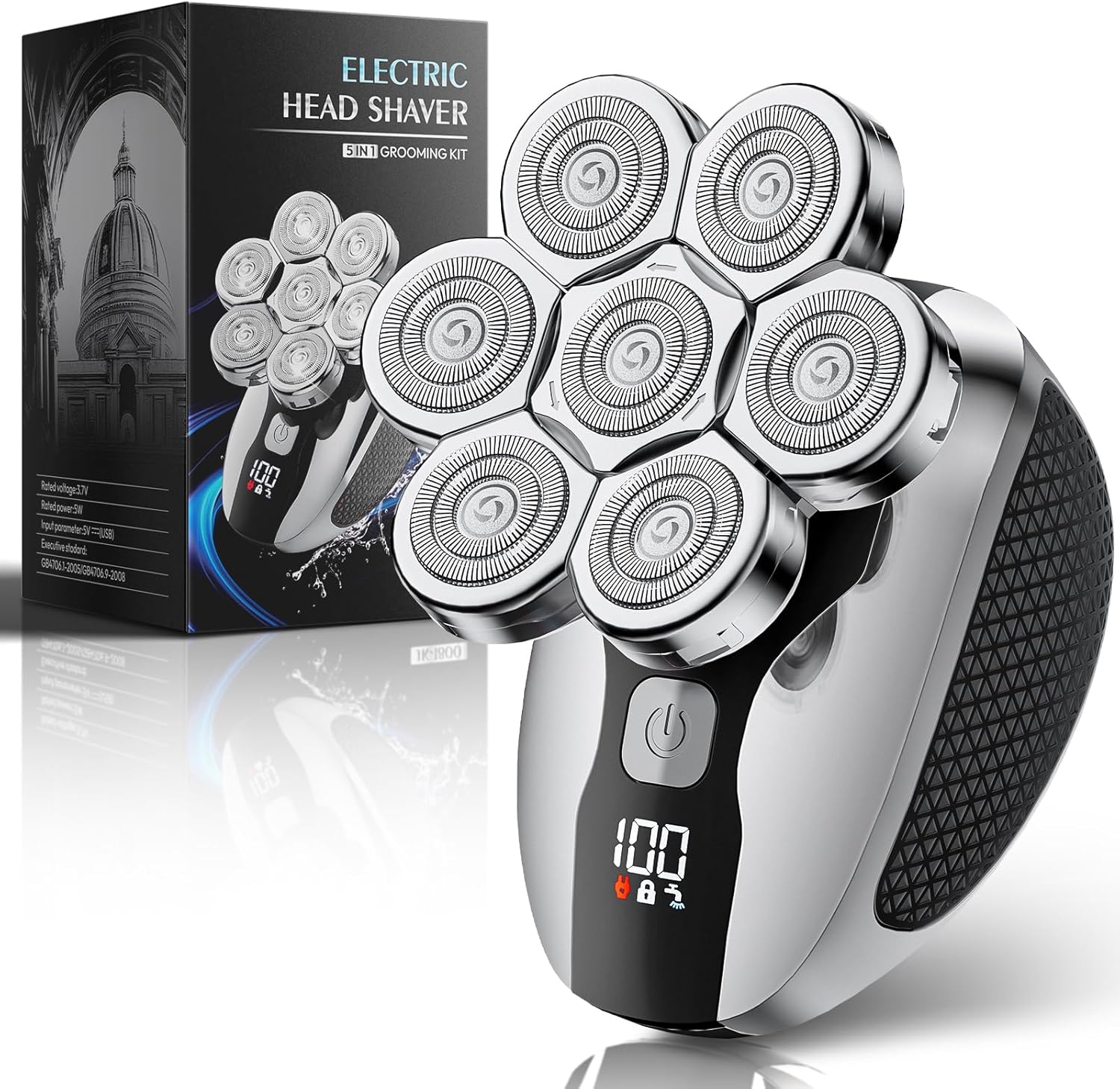 Head Shavers for Bald Men, Professional 5-in-1 Electric Head Shaver Grooming Kit, 7D Floating Wet & Dry Electric Razor for Bald Heads with LED Smart Display & Type-C Charging for Hair/Face/Beard