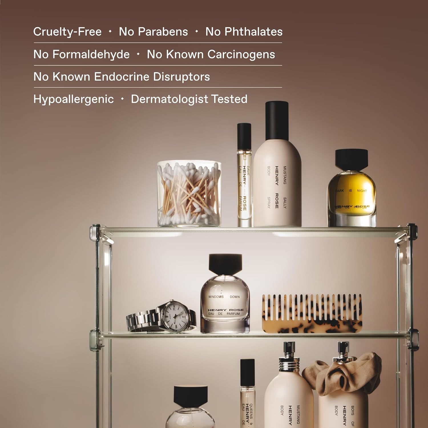 Sustainable, Minimalist Packaging – A small, travel size perfume that reflects Henry Rose’s commitment to sustainability, this mini spray features recyclable materials and a sleek, modern design.