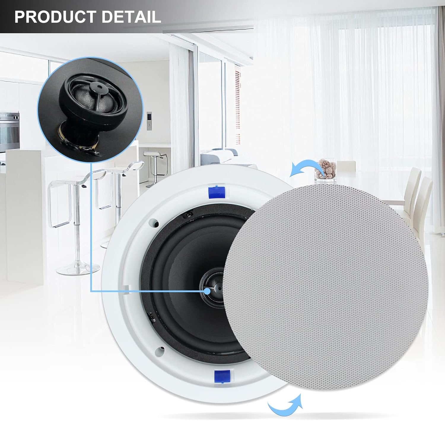 * HIGH DURABILITY & SUPERIOR SOUND: Wide sound dispersion designed speakers easily integrate with new and existing audio systems, traditional Passive speaker design, simply drive power from your home audio receiver or amp,suitable for bathroom, kitchen, or custom audio applications on any flat surface