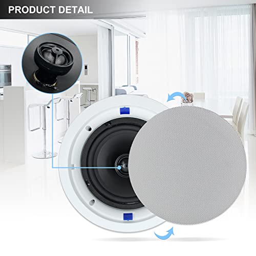 * FLUSH MOUNT DESIGN: Two pairs of flush mount design 4 speakers for simple and easy in-wall / in-ceiling installation. The product includes the cutout dimension at 8.07 Inches(20.5CM) in diameter x 4.92 Inches (12.5CM) in depth and changeable round grills
