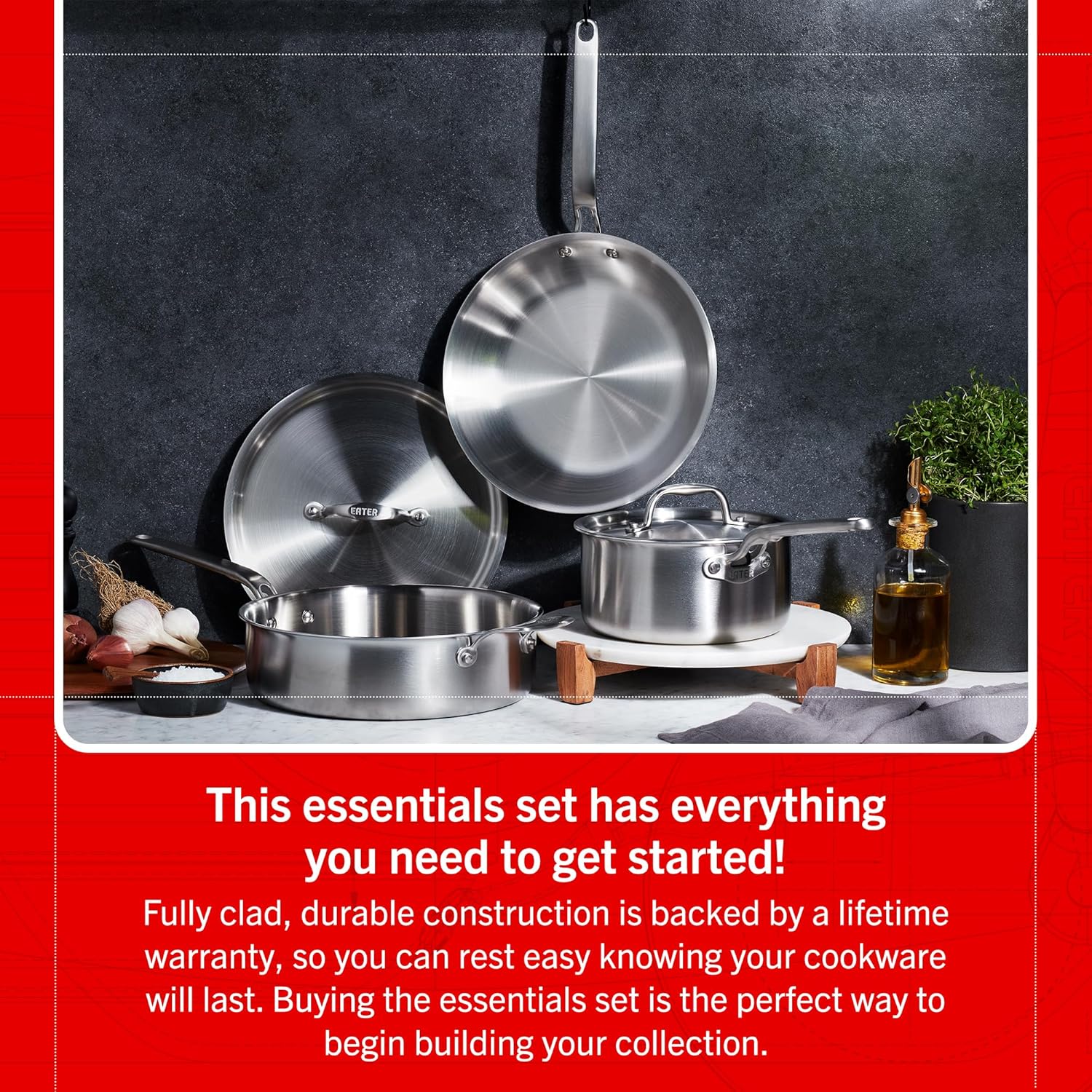 EATER X HERITAGE STEEL: Nobody knows food like Eater, and nobody knows cookware like Heritage Steel. Together, we have created a line of stainless clad cookware that brings professional quality to the home cook like never before. This cookware is designed to be smart, approachable, and affordable, enabling a lifetime of adventurous cooking.