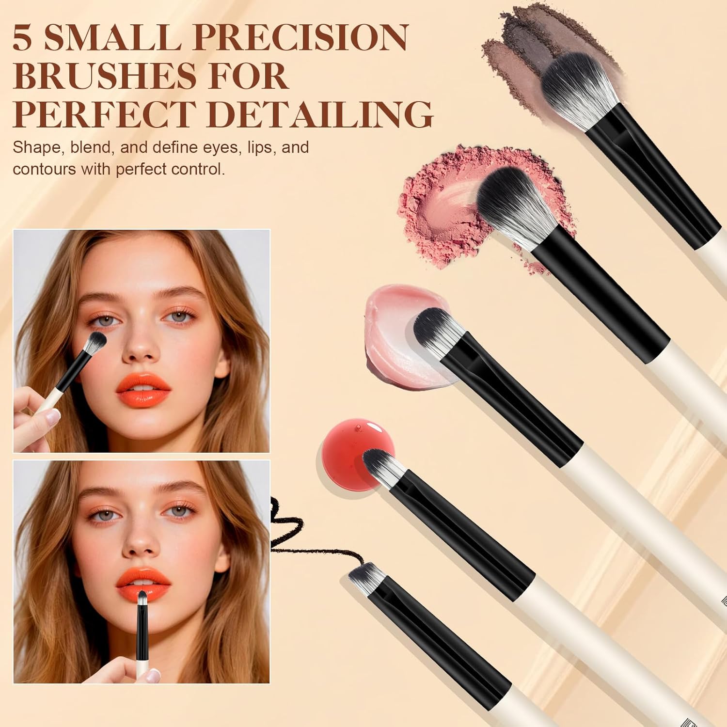 COMPETE FACE AND DETAIL BRUSH COLLECTION FOR FLAWLESS RESULTS – This set feature 5 large face brushes and 5 precise and detail brushes to handle every makeup step with ease. Whether applying powder, foundation, contour, or eyeshadow, each brush ensures smooth, even coverage. Designed for beginners and professionals alike to achieve salon-quality finishes at home.