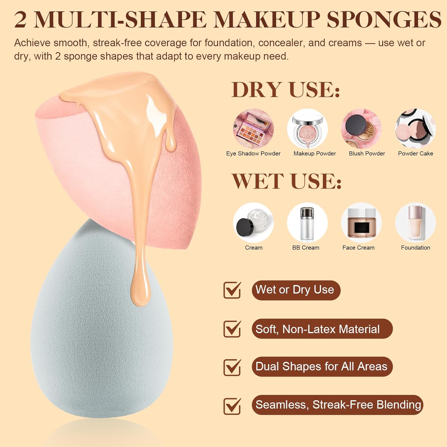 BOUNS 6PCS BEAUTY TOOLS FOR A FLAWLESS, FUSS-FREE ROUTINE – Includes 2 non-latex beauty sponges and 4 multi-use hair clips to elevate your daily routine. The soft sponges expand when damp for smooth, streak-free blending of foundation, concealer, or BB cream, helping you create a natural makeup look with ease. The sturdy clips keep hair neatly in place during makeup or skincare, making every beauty routine cleaner, quicker, and more enjoyable.