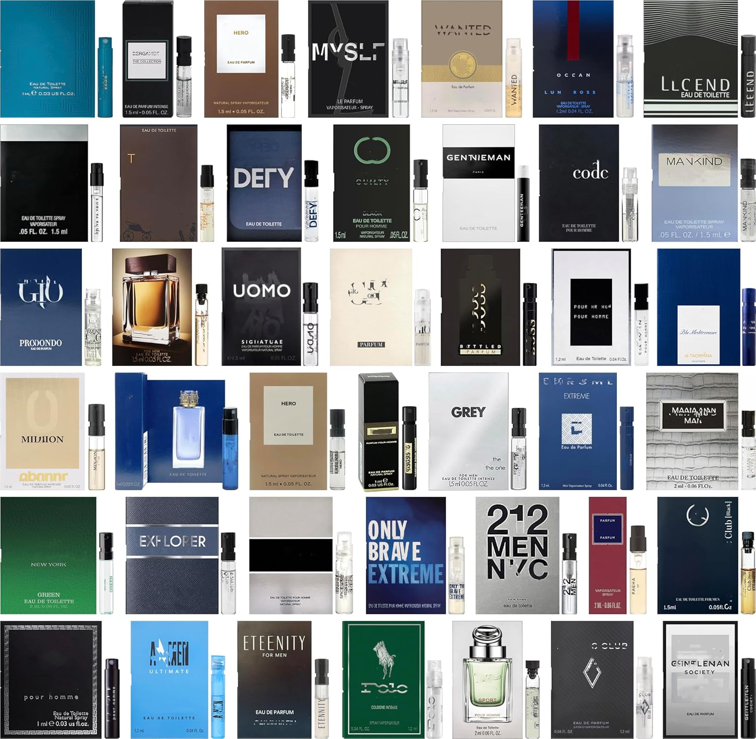 You will receive 10 vials of randomly selected high end cologne brands for men.