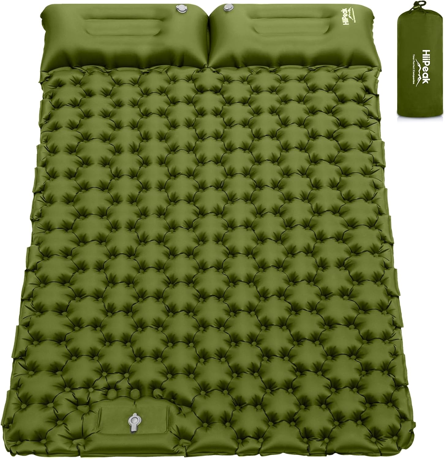 HiiPeak Double Sleeping Pad – Self Inflating 3″ Extra-Thick for 2 Person with Pillow Built-in Foot Pump Inflatable Sleeping Mat for Backpacking, Hiking, Traveling, Tent, Portable Camping Mat (Green)