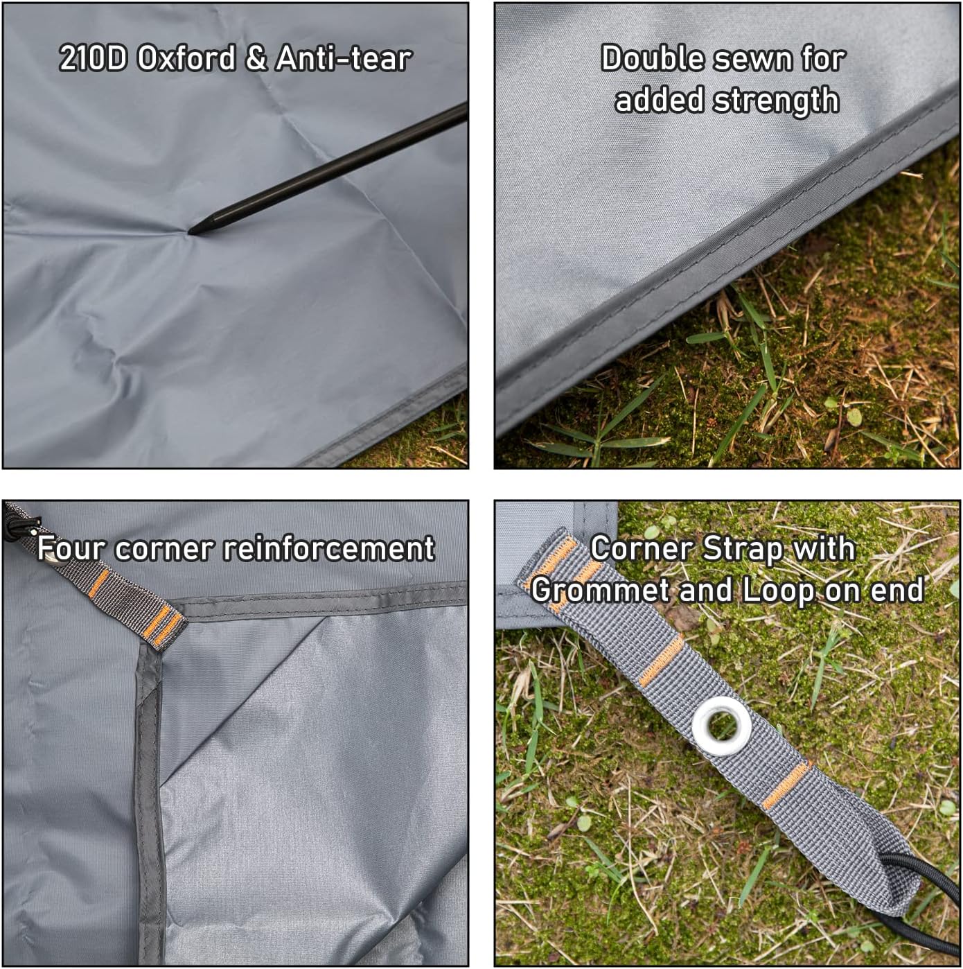DURABLE: Waterproof tarp is made from 210D oxford ripstop polyester fabric that is waterproof (PU3000mm). Provides more grommets than the regular model.