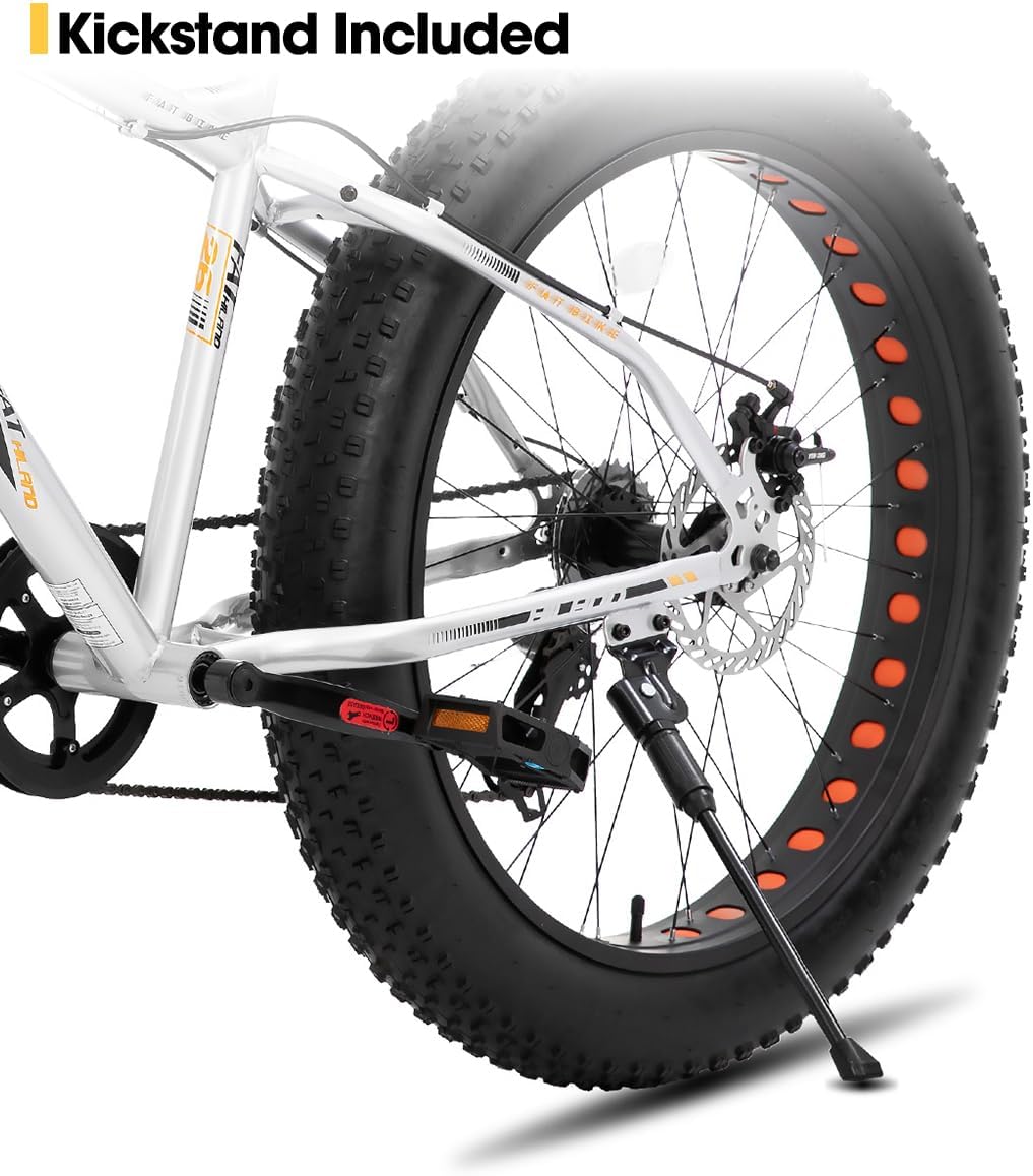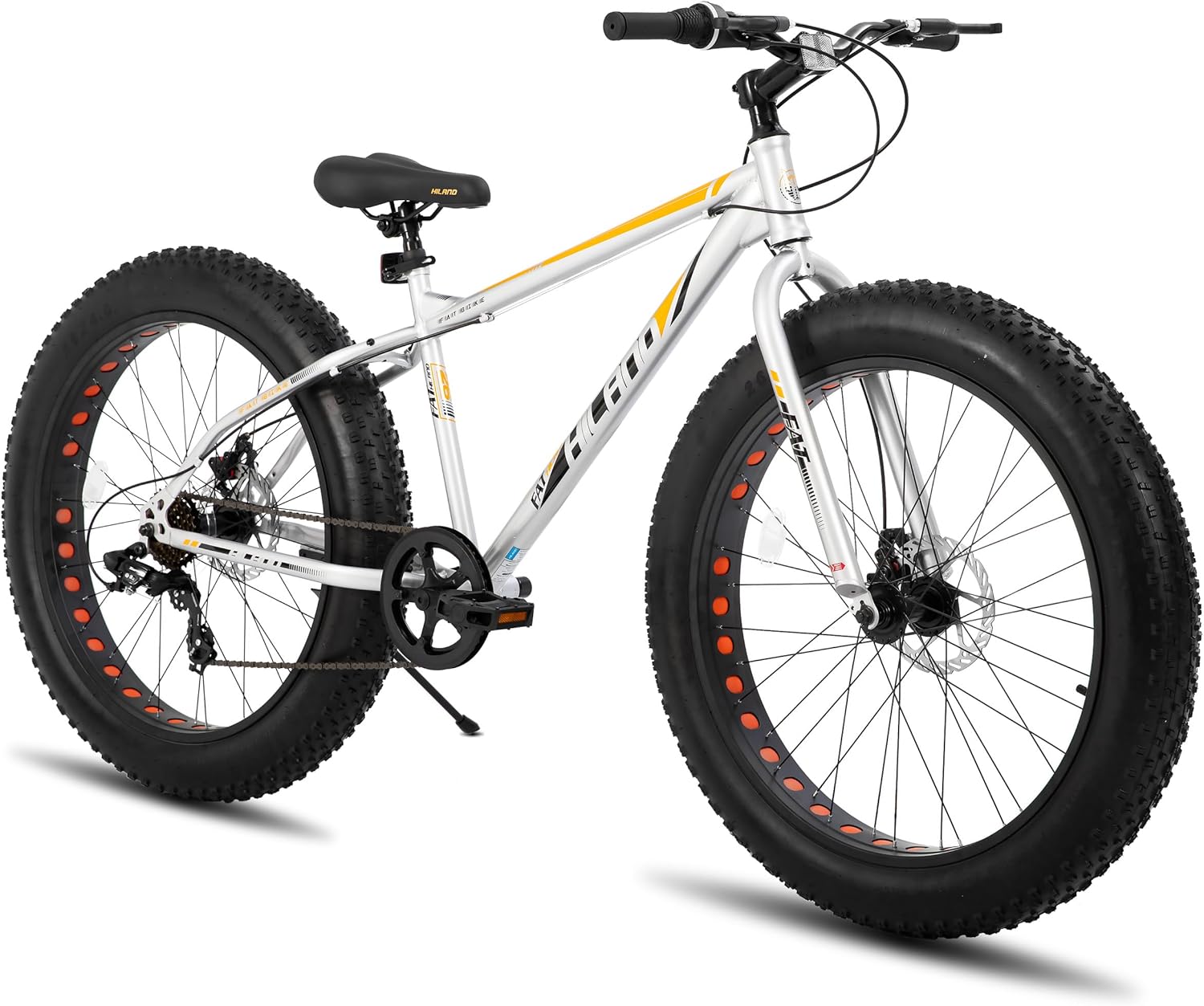 HILAND 24 26 Inch Fat Tire Mountain Bike for Men and Women, High Carbon Steel Frame Beach and Snow Wide Tire Adult Bicycle, 7-Speed and Dual-Disc Brake MTB