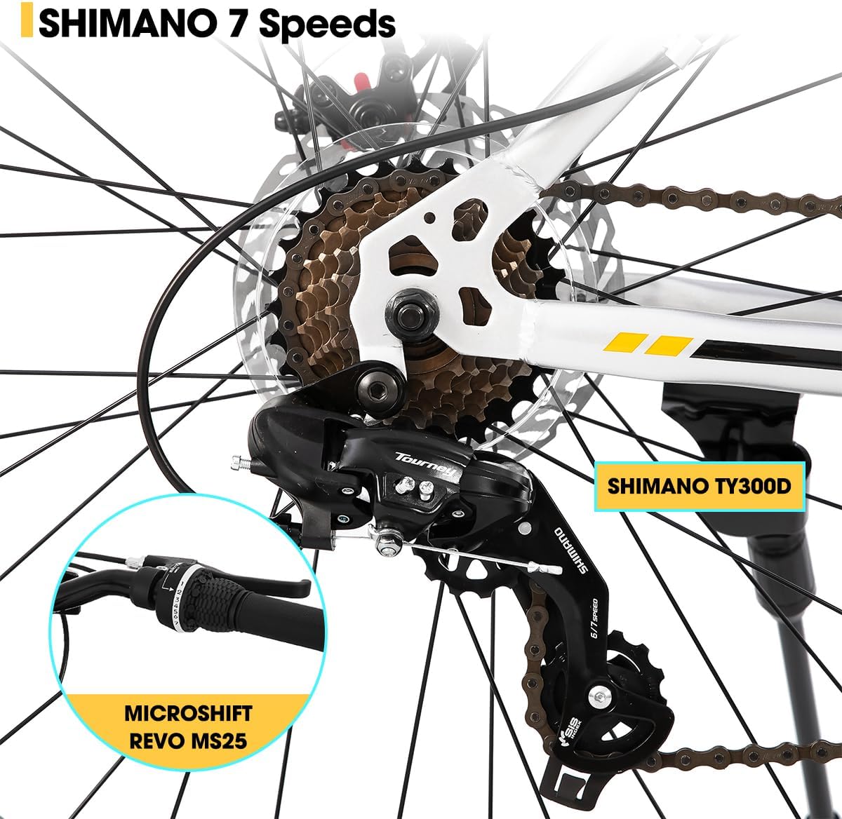 7 Speed: TY300D rear derailleur and MICROSHIFT MS25 shifters make shifting smoother and easier; Wide tire bikes are more focused on simplicity, comfort and riding enjoyment