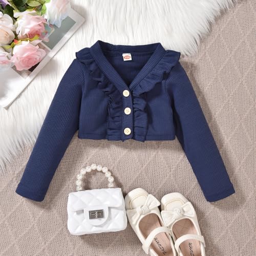 🌻🌻🌻UNIQUE DESIGN: Fashion dress and cardigan set, ruffle long sleeve button front design cardigan, sleeveless floral print dress, matching a adorable headband, 3 pieces toddler girl dress fall spring outfits, make your baby more attractive.