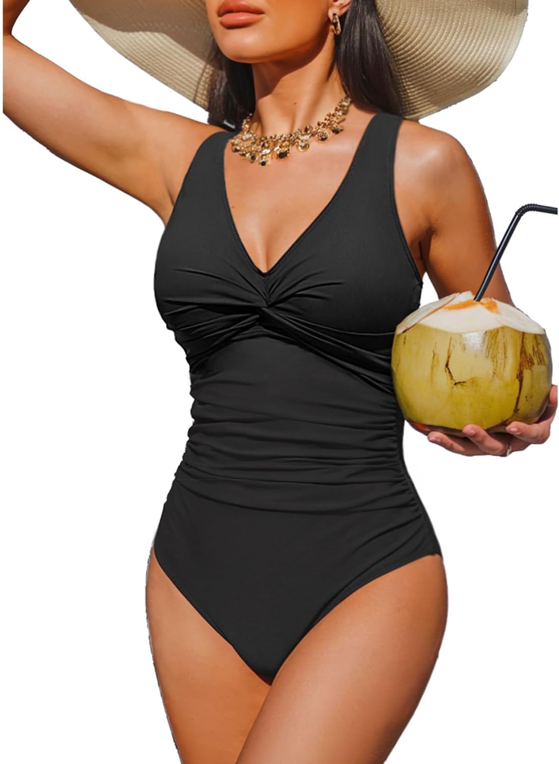 Holipick Women Tummy Control One Piece Swimsuit – Push Up Bathing Suit Full Coverage Slimming Swimwear