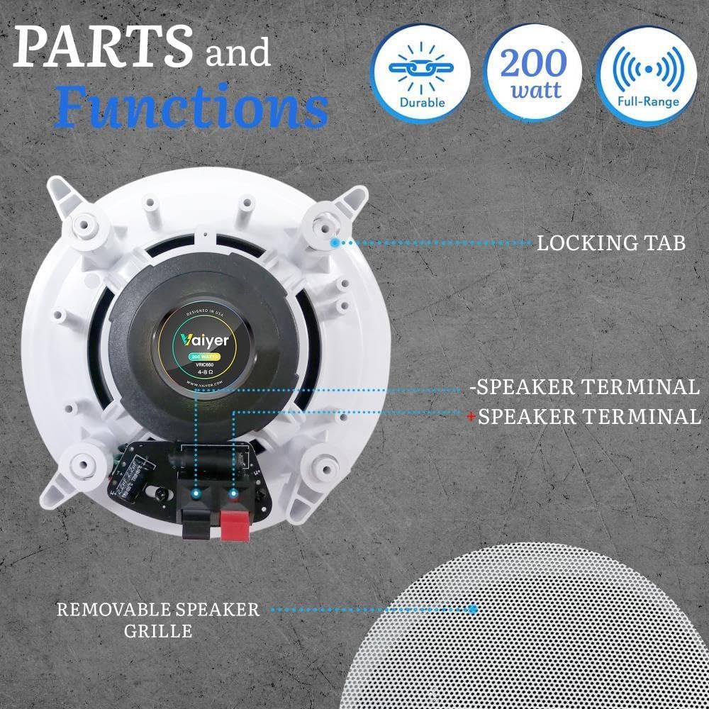 VERSATILE SPEAKER SYSTEM: Elevate your audio experience with our versatile speaker system, designed for in-wall and in-ceiling applications. Featuring 6.50” speakers with high-temperature voice coils and high-efficiency response rates, these speakers offer exceptional sound quality. Convenient speaker terminals and a cut-out template ensure easy installation for a clean and professional look.