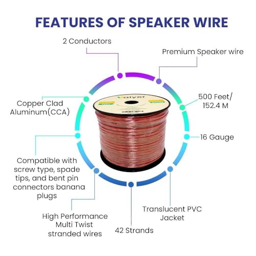 HIGH-END SPEAKER WIRE: Enjoy crystal-clear, distortion-free sound with our 16 gauge 500 ft. spool of high-quality speaker zip wire. The plastic jacket helps ensure high-quality undistorted signals, while the black line indicates polarity for easy setup. Connect your audio speakers to an A/V receiver or amplifier effortlessly.