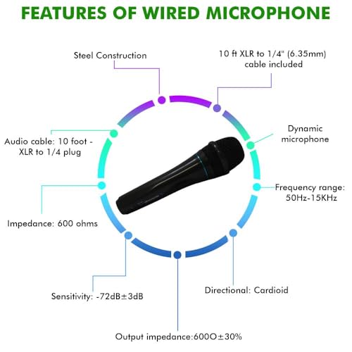 2 QTY OF PROFESSIONAL DYNAMIC MICROPHONES: Each microphone comes with durable steel construction and a 10 ft XLR to 1/4″ cable for easy connectivity. With a frequency range of 50Hz-15kHz, cardioid directional pattern, 600 ohm impedance, and -72dB sensitivity, these microphones are perfect for karaoke, weddings, parties, DJs, church services, and more, providing clear, high-quality sound.