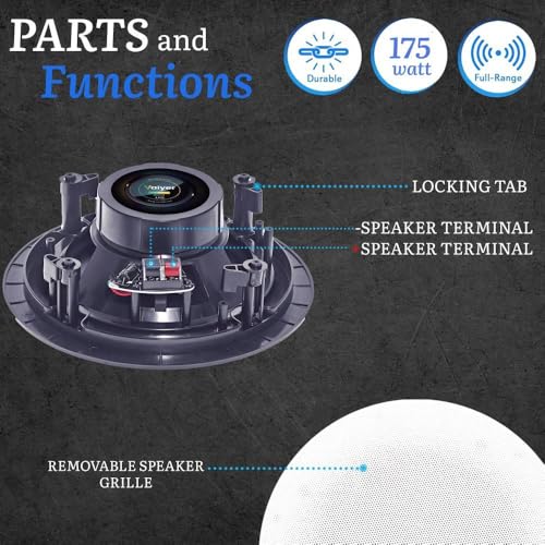 VERSATILE SPEAKER SYSTEM: Elevate your audio experience with our versatile speaker system, designed for in-wall and in-ceiling applications. Featuring 5.25” speakers with high-temperature voice coils and high-efficiency response rates, these speakers offer exceptional sound quality. Convenient speaker terminals and a cut-out template ensure easy installation for a clean and professional look.