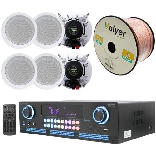 Home Theater System Kit 2000 Watts Bluetooth Amplifier with 6 Qty 6.5″ 200 Watts in-Wall in-Ceiling Speakers & 16 Gauge 250 ft. Speaker Wire by Technical Pro