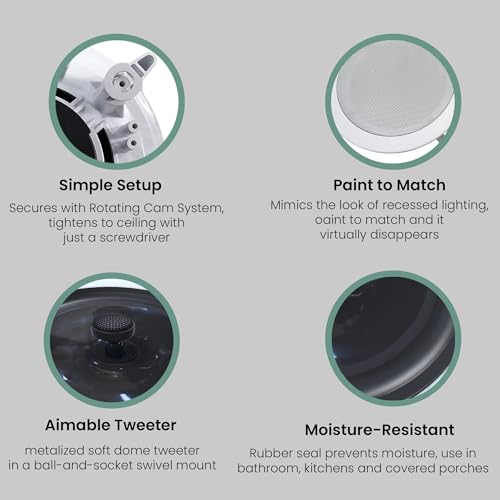𝗙𝗟𝗨𝗦𝗛 𝗠𝗢𝗨𝗡𝗧 𝗗𝗘𝗦𝗜𝗚𝗡: A pair of flush mount design midbass stereo sound speaker for simple and easy in-wall / in-ceiling installation. The product features 1 Inch high temperature voice coil to produce powerful, rich sound or quiet background music