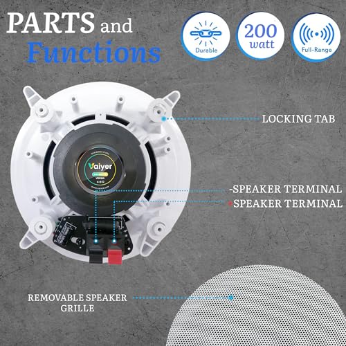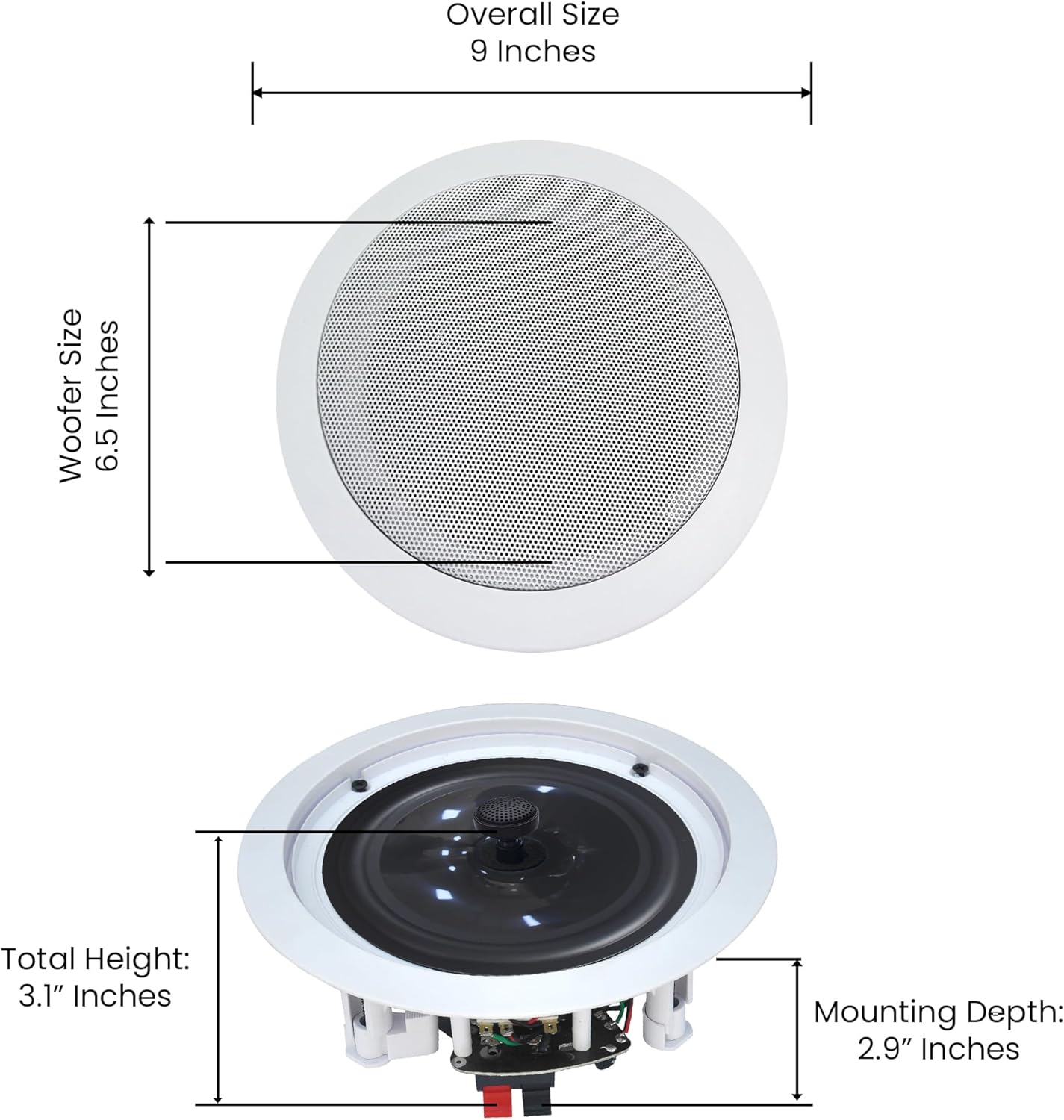 𝟮-𝗪𝗔𝗬 𝗠𝗢𝗨𝗡𝗧 𝗦𝗣𝗘𝗔𝗞𝗘𝗥: The pair of 6.5 Inch High performance in-ceiling stereo sound speaker has two way of installation: in-wall or in-ceiling flush mount. It has convenient speaker terminals that allow for quick and hassle-free speaker wire connection at any custom installations