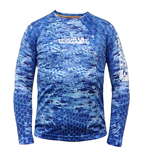 Hook & Tackle Boys Fishtek Long Sleeve Wicked Dry and Cool Sun Protection Performance t-Shirt Blue Lagoon Large