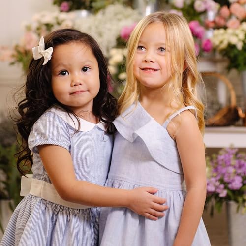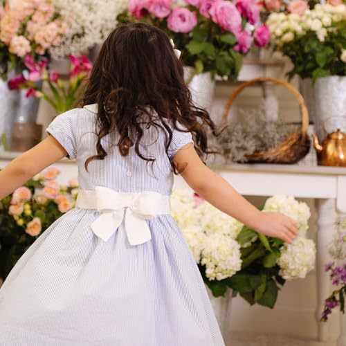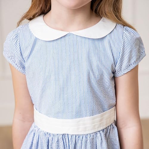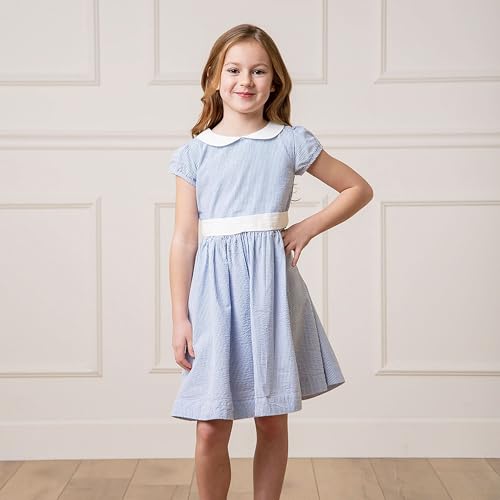 Hope & Henry Girls’ Organic Short Sleeve Seersucker Dress with Peter Pan Collar, 8, Blue Seersucker