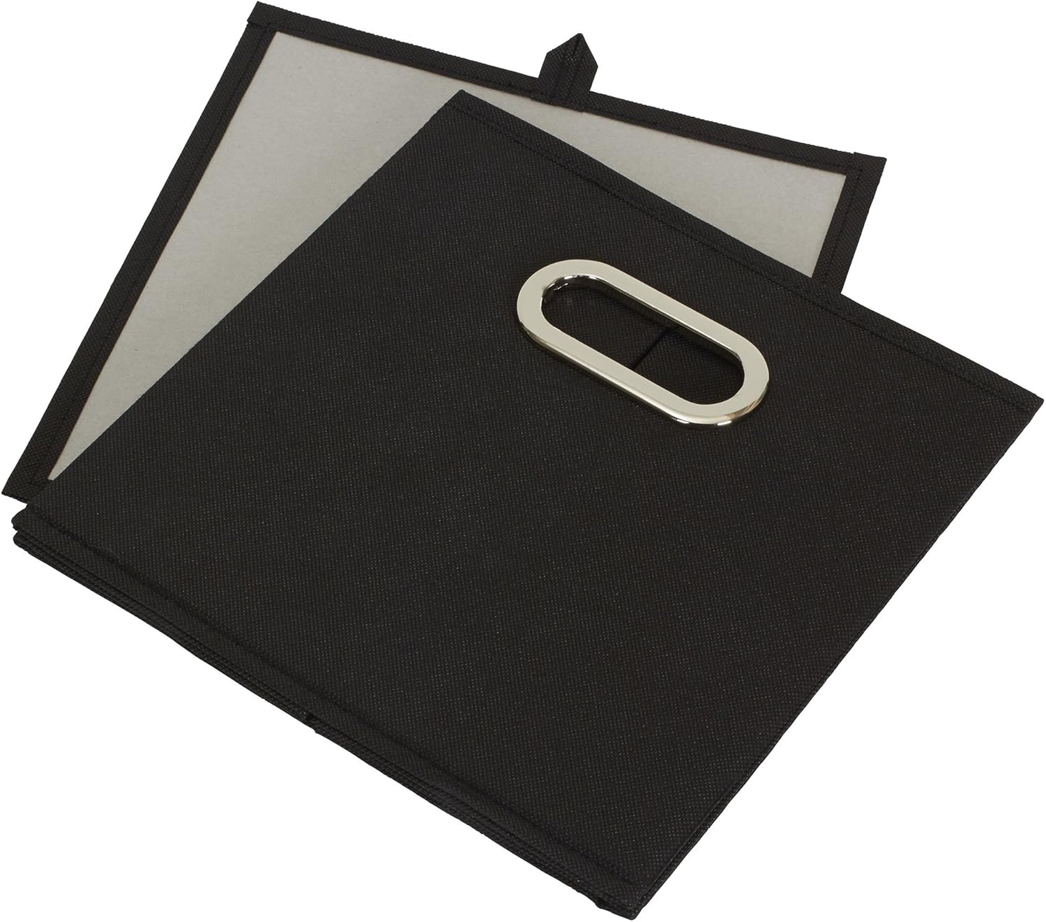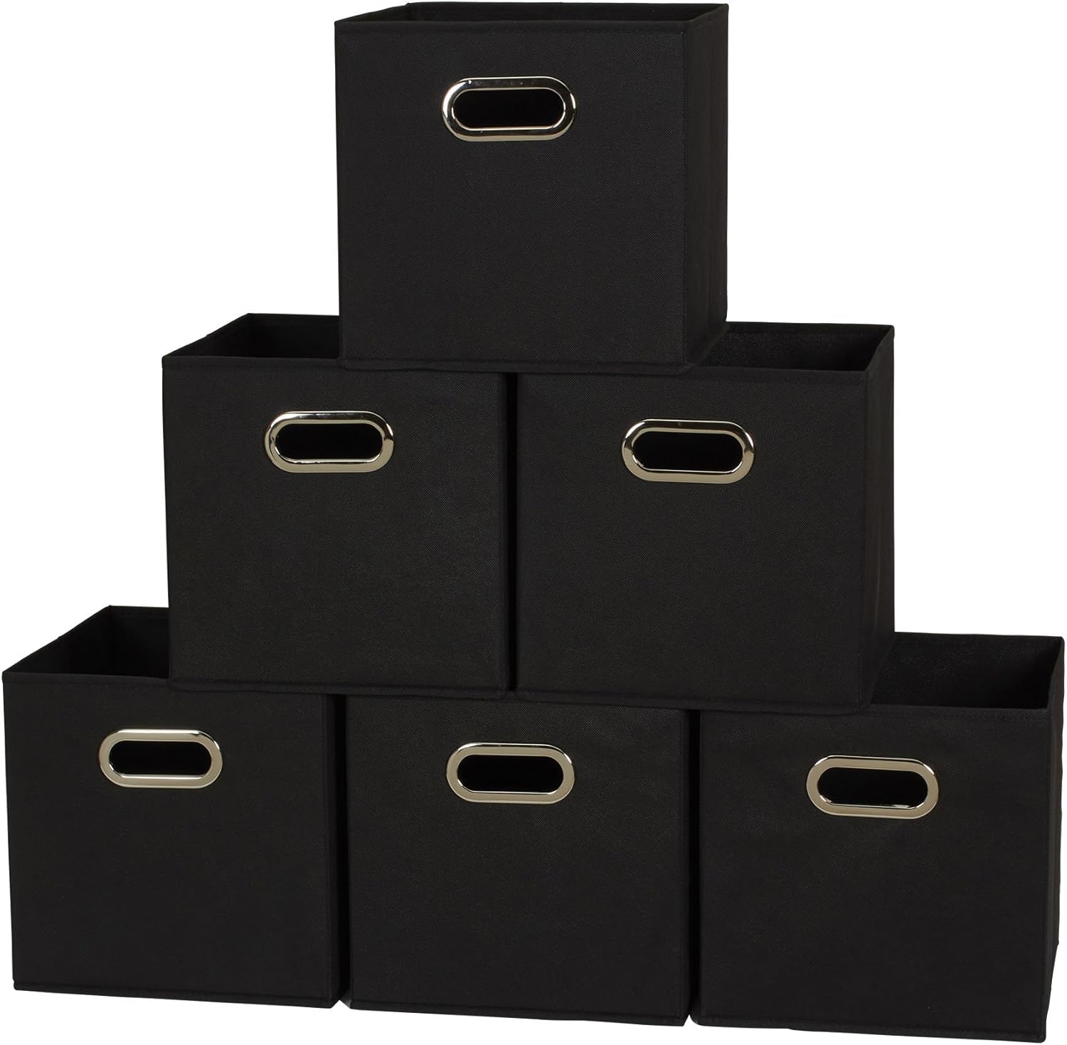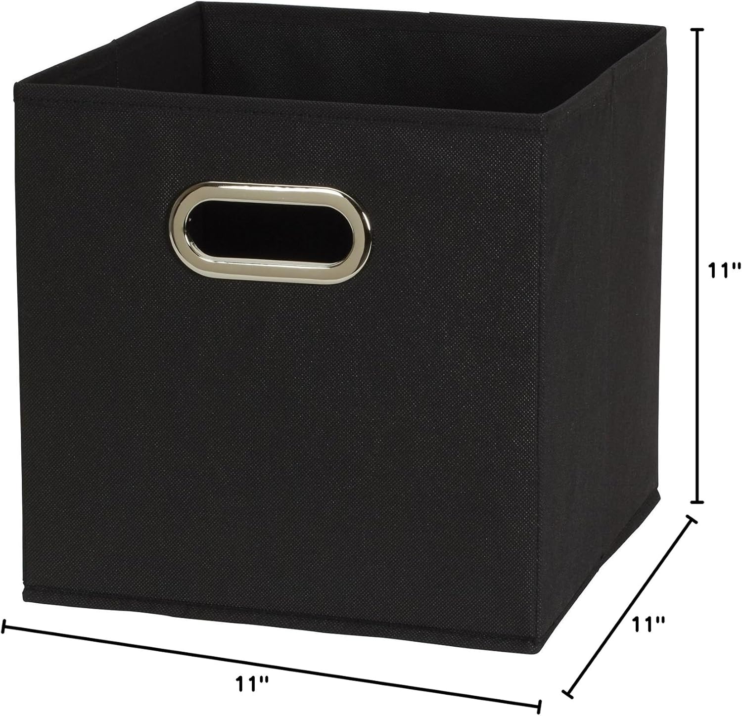 Offered in a pack of 6, these fabric storage bins are full of storage potential and can be used in any room of your home. The simple yet chic design can pair well with any pre-existing style and will help you cut down on clutter. The storage bins are made with sturdy fiberboard sides, lined with a durable black fabric. Each bin easily slides in and out of shelving with a pull of the contrasting silver grommet handle. To save on space while not in use, these bins can be folded for compact self-storage or stacked to maximize space while in use. These storage bins have a classic look that can be a great addition to any room. The bins can be used in most standard-sized cubby-like shelving for a closed storage option. They can hold books, art supplies or excess clutter on bookshelves or closet shelves. The storage potential of these bins is limited only by your imagination. This pack of 6 black storage bins is one of the essentials to an organized and tidy home. Their versatility makes them a classic storage option. These bins can also be easily cleaned with a damp cloth. Whether you live in an apartment, condo, dormitory or house, you’re sure to benefit from the use of these fabric storage bins. Measures 11” H x 11” W x 11” D.