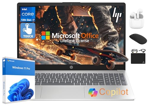 HP 2025 Flagship 15.6″ FHD Touchscreen Laptop, 10-Core Intel i7 Processor, 64GB RAM, 1.5TB Storage (1TB SSD + 500GB Ext), Iris Xe Graphic WiFi, HubxcelAccessory, Win 11 Pro w/Lifetime Microsoft Office