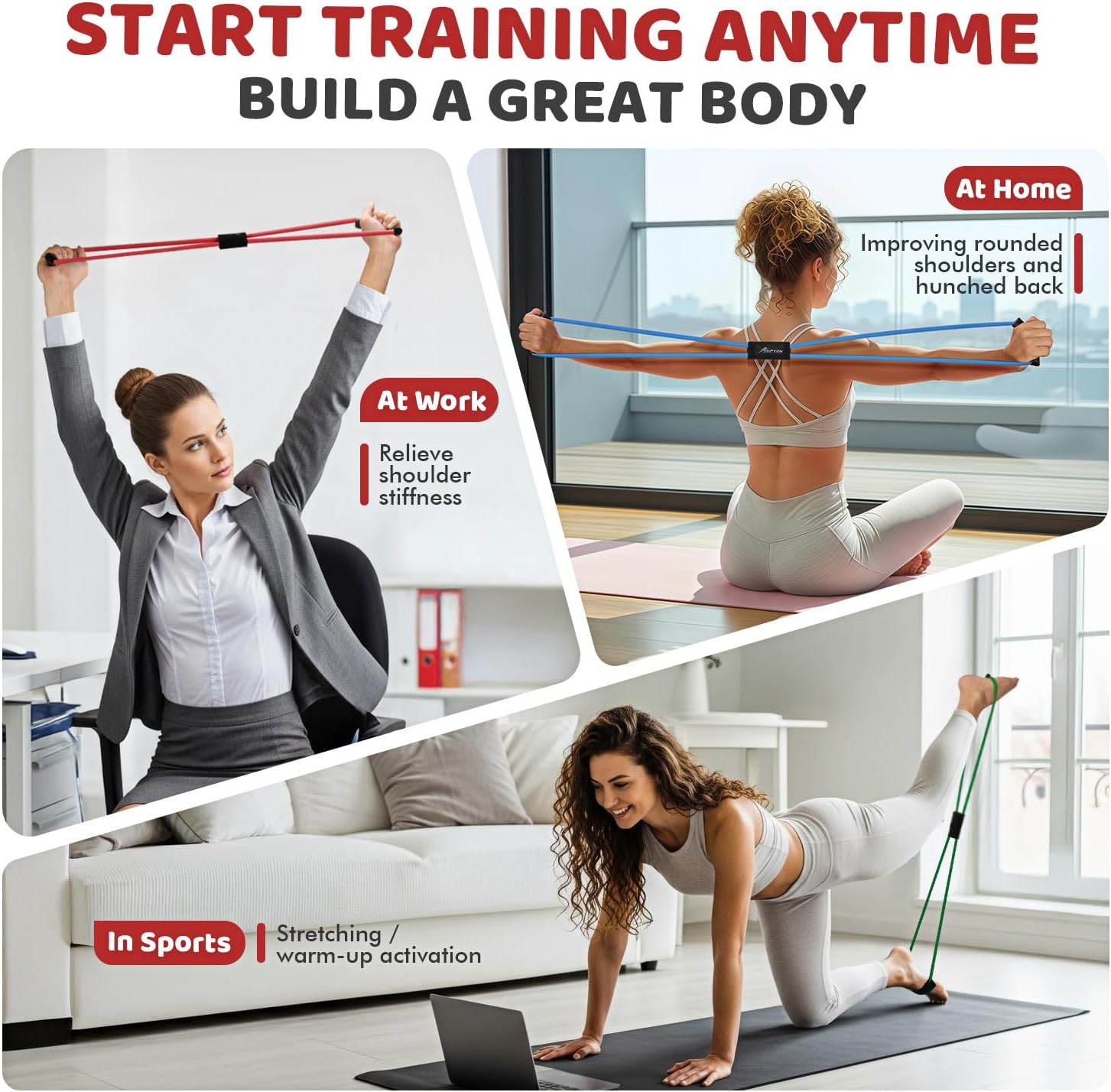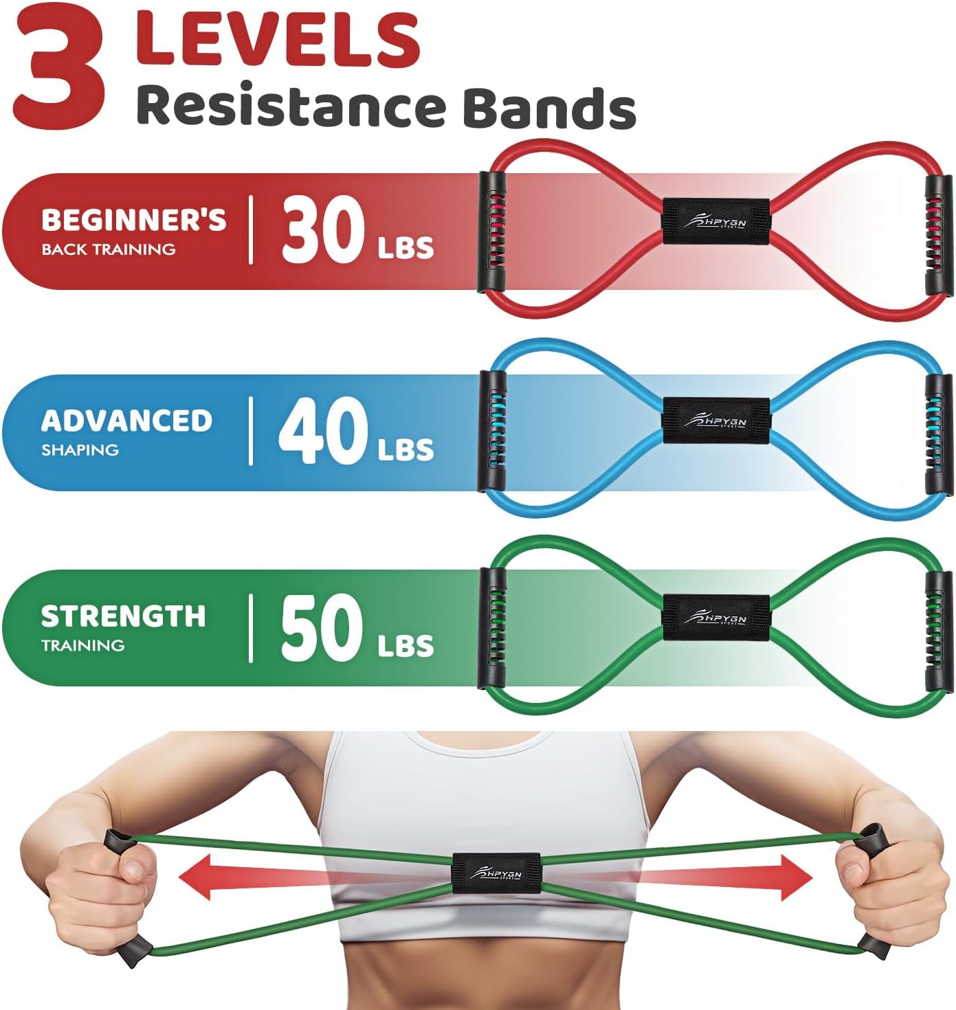 【Posture correction, Body Shaping】Persist in ten minutes a day, use the 8 shaped resistance band to perform chest expansion, stretching, and hip lifting. Soon you will say goodbye to shrugging your shoulders and having a strong chest. HPYGN closed-loop figure 8 design meets the needs of having long legs and peach buttocks while lying at home and practicing easily, This is a favorite of every woman.