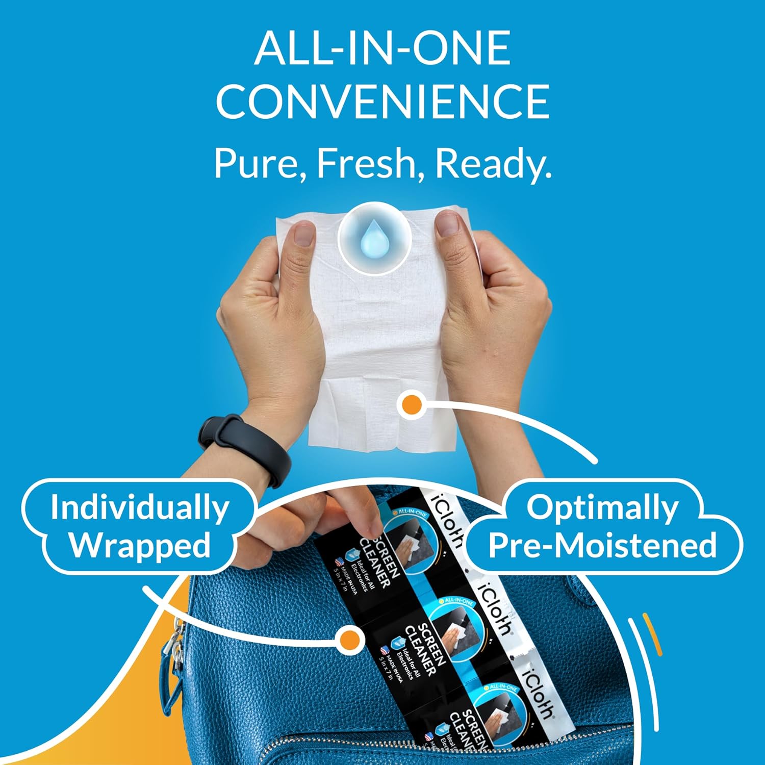 PERFECT FOR SCREENS & ELECTRONICS – iCloth wipes effectively clean all types of screens with an ultra-pure formula of deionized water and isopropyl alcohol (IPA), ensuring no damage to sensitive coatings on smartphones, tablets, laptops, computer monitors, car touchscreens, and other electronics.