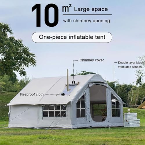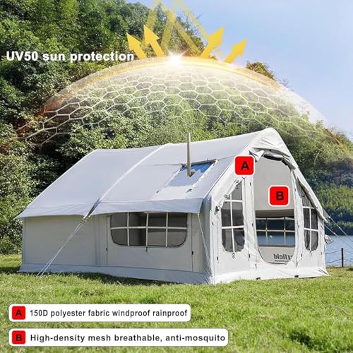 ♣【4-Season Inflatable Tent】: This family camping tent features a viewing window for improved breathability and chimney openings for easy heating. This inflatable tent features 1 door for easy entry and exit, 4 large mesh windows, and d-shaped arches for increased airflow, keeping you relaxed and comfortable.