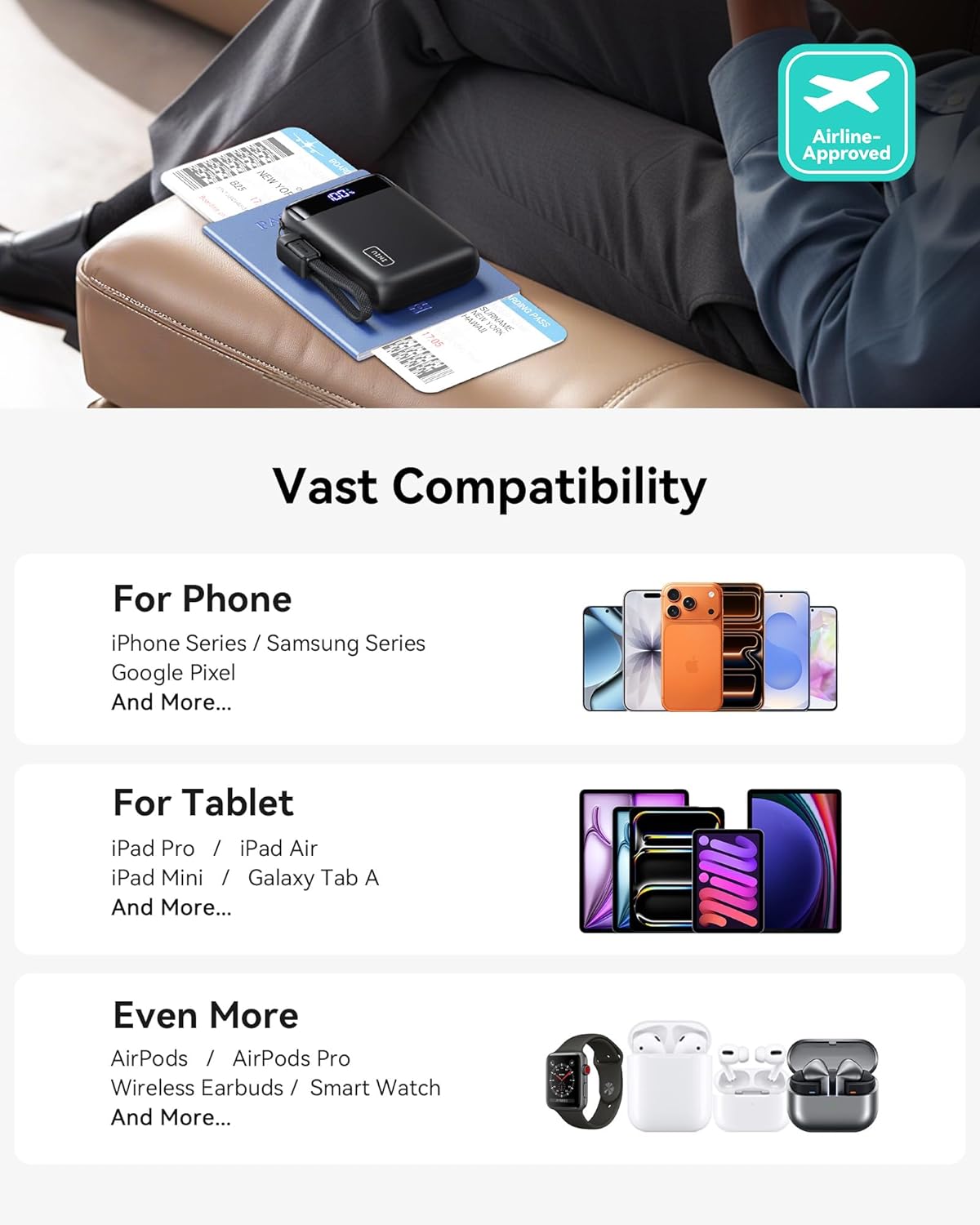 Specification: INIU Portable Charger, Smallest 22.5W 20000mAh USB C in & Out Power Bank Fast Charging, PD 3.0+QC 4.0 LED Display Phone Battery Pack Compatible with iPhone 17 16 15 14 Pro Samsung S24 Google iPad etc