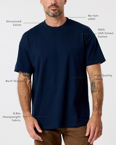 100% HEAVYWEIGHT COTTON: Experience maximum comfort and durability in our 6.8oz heavyweight fabric. the combed ring-spun cotton ensures our heavy cotton t shirts for men are soft and cozy all day.